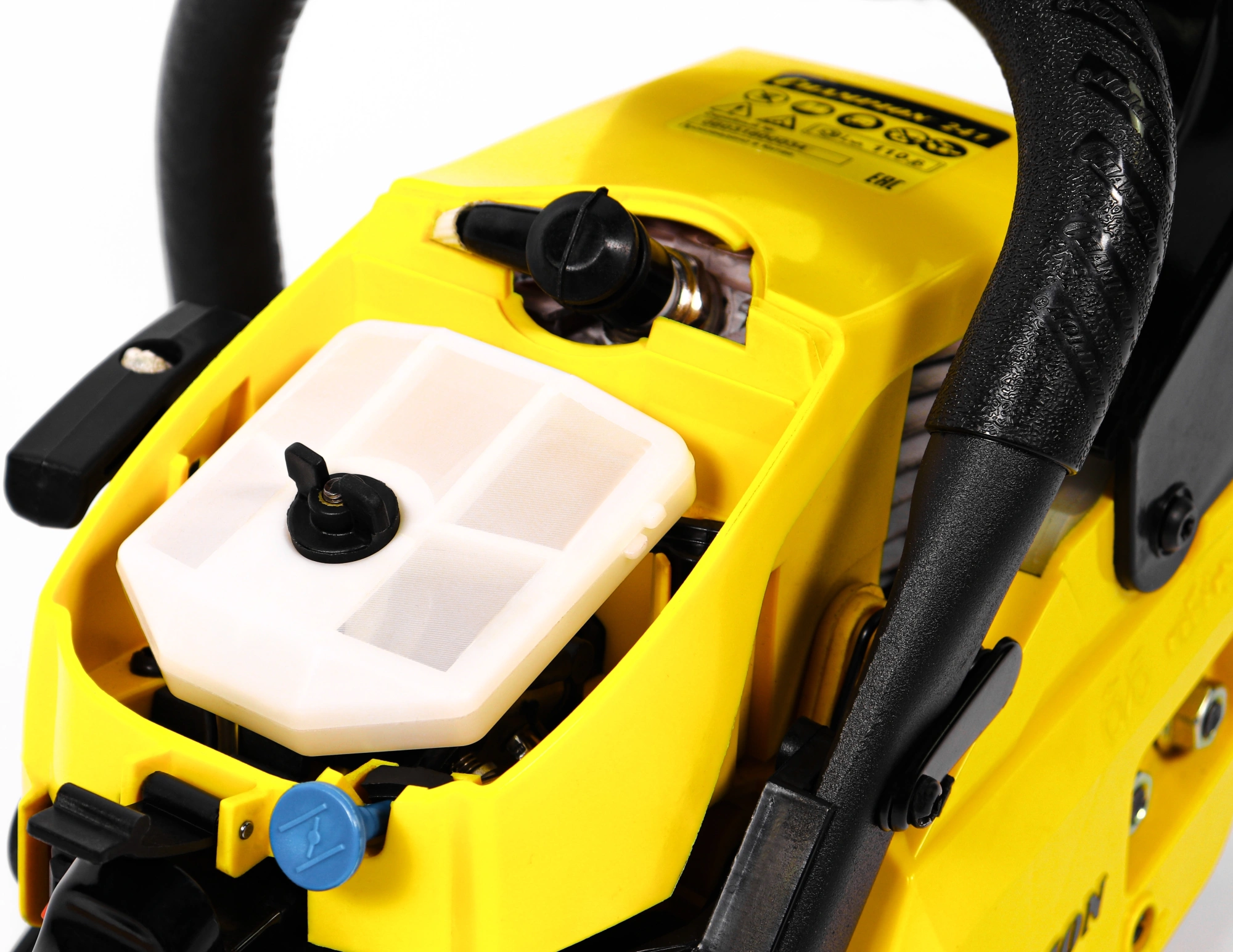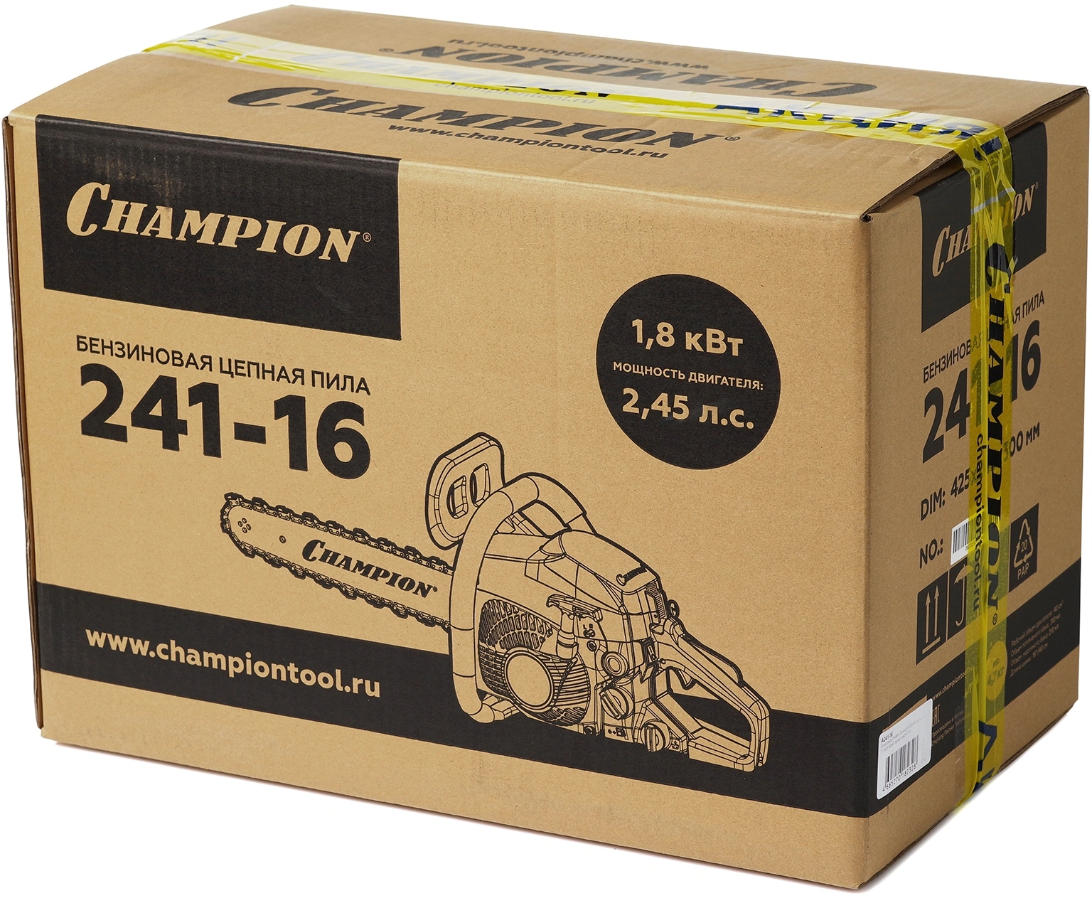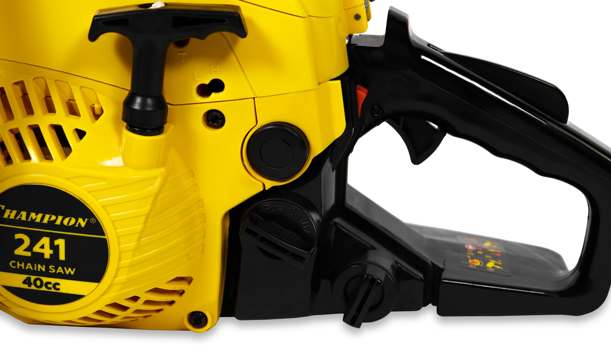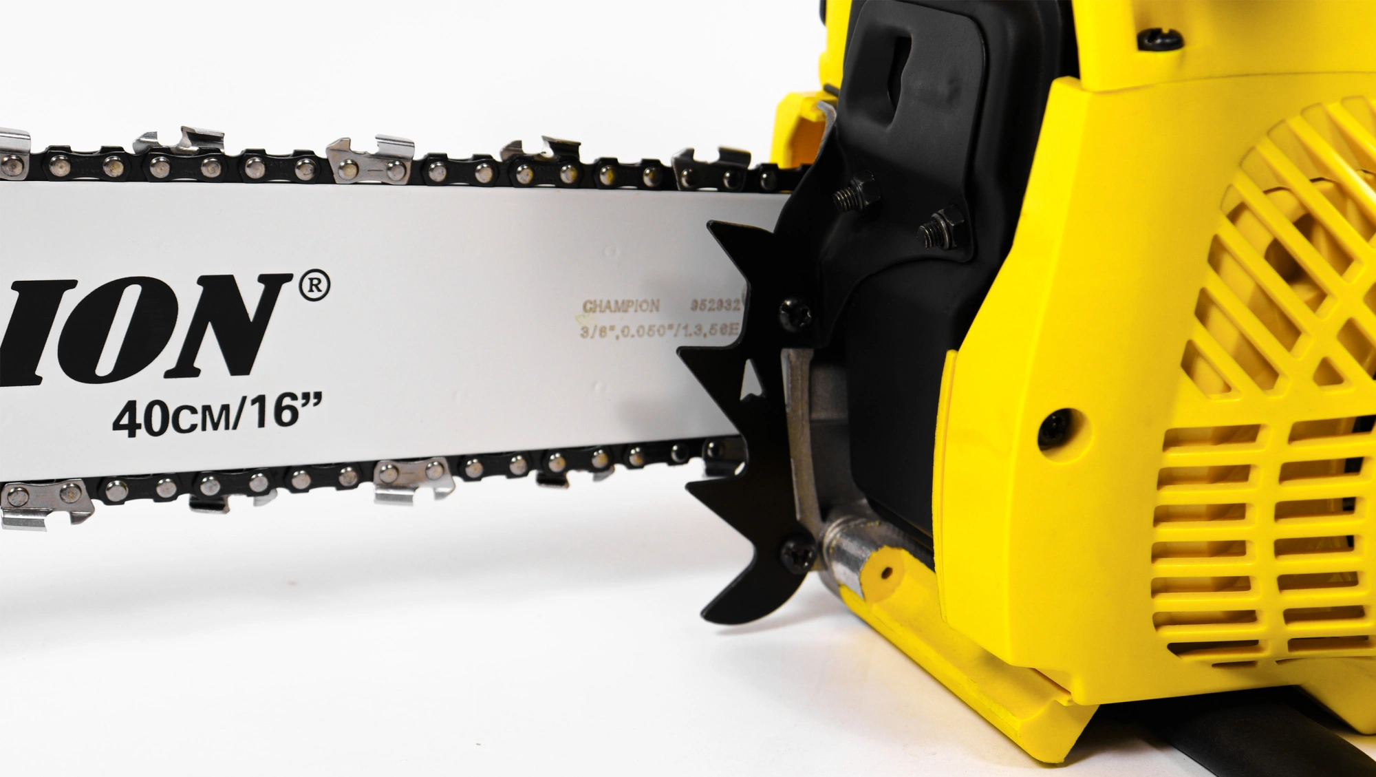 Легкая бензопила с двигателем 1,8 кВт (2,45 л.с.) и шиной 40 см, подходит для обрезки веток и заготовки дров. Вес без шины и цепи — 4,7 кг. В комплекте — цепь, свеча зажигания, смазка и присадка для топлива. В подарок идут защитные наушники Champion C1002. Легкий старт, автоматическая смазка цепи.