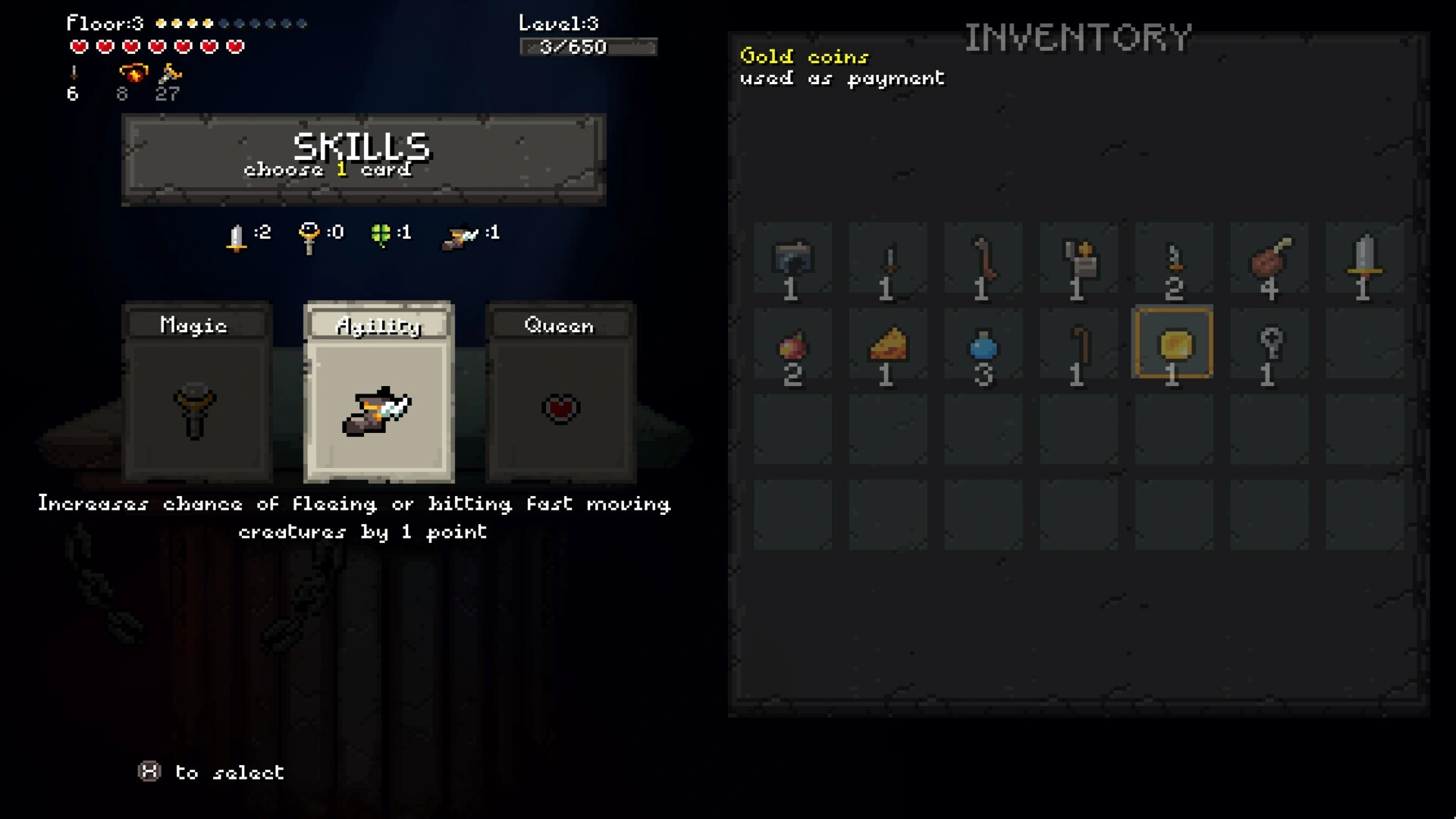 Sir Questionnaire - это пошаговая игра в жанре hack'n'slash, в которой вы попадаете в подземелье, и каждая комната дает вам два варианта: покинуть ее или взаимодействовать с тем, что в ней находится.