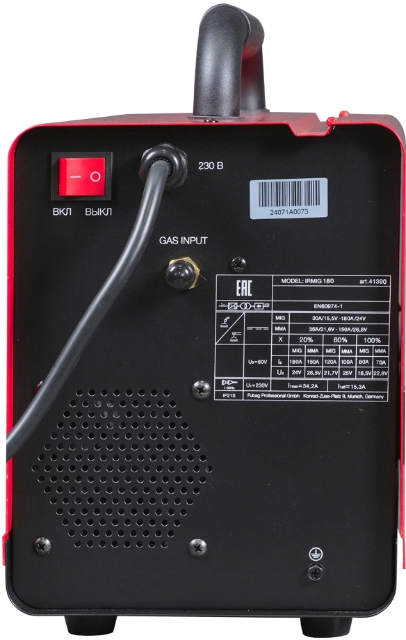 Горелка 250А, кабель заземления 3 м., кабель с эллектрододержателем 1,6 м., газовый шланг 3 м., ролик 0,8/1 мм., установленный в подающий механизм.