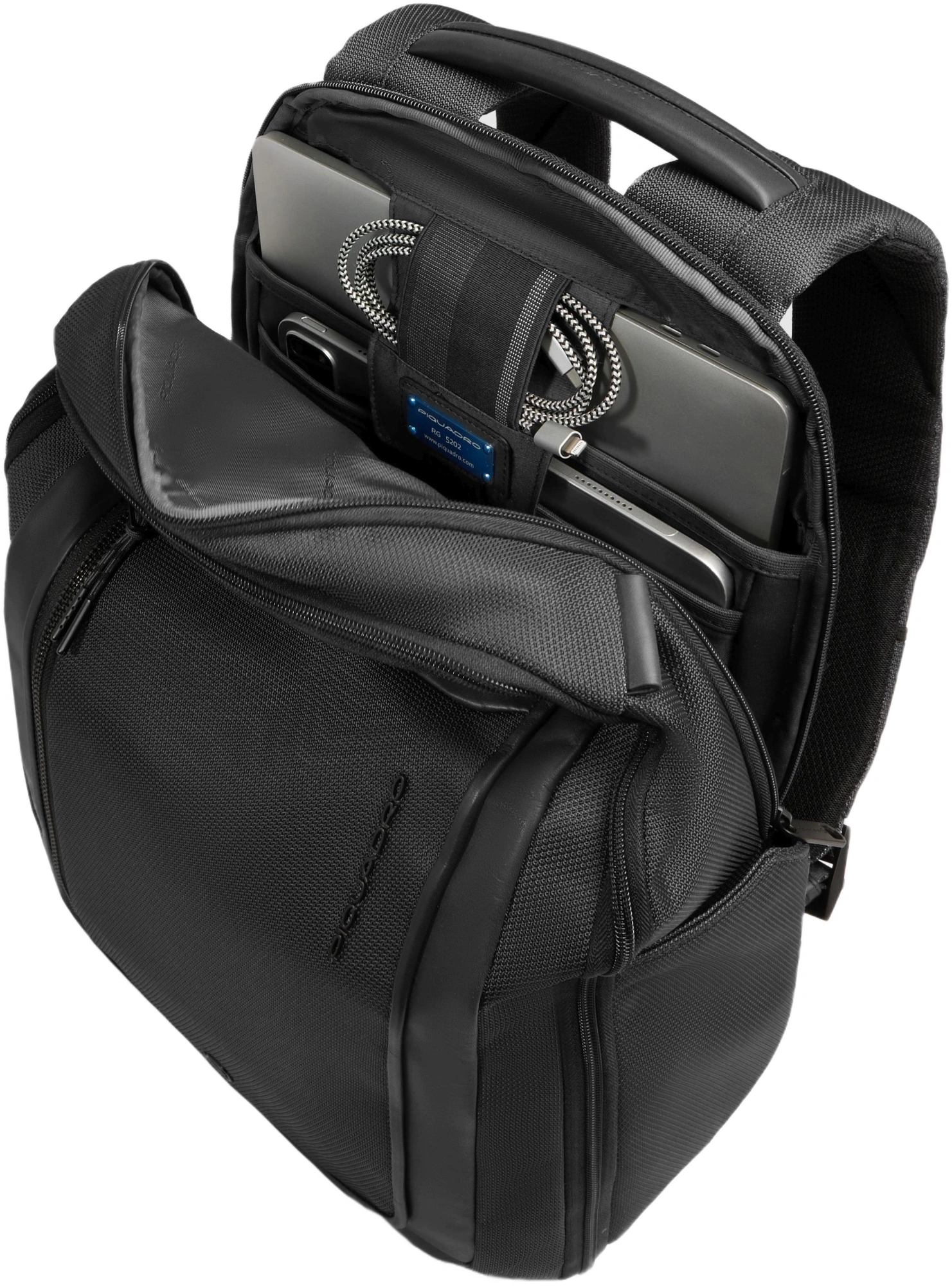 Рюкзак мужской Piquadro Lyss CA6928S143BM/N черный полиуретан/полиэстер/натур.кожа