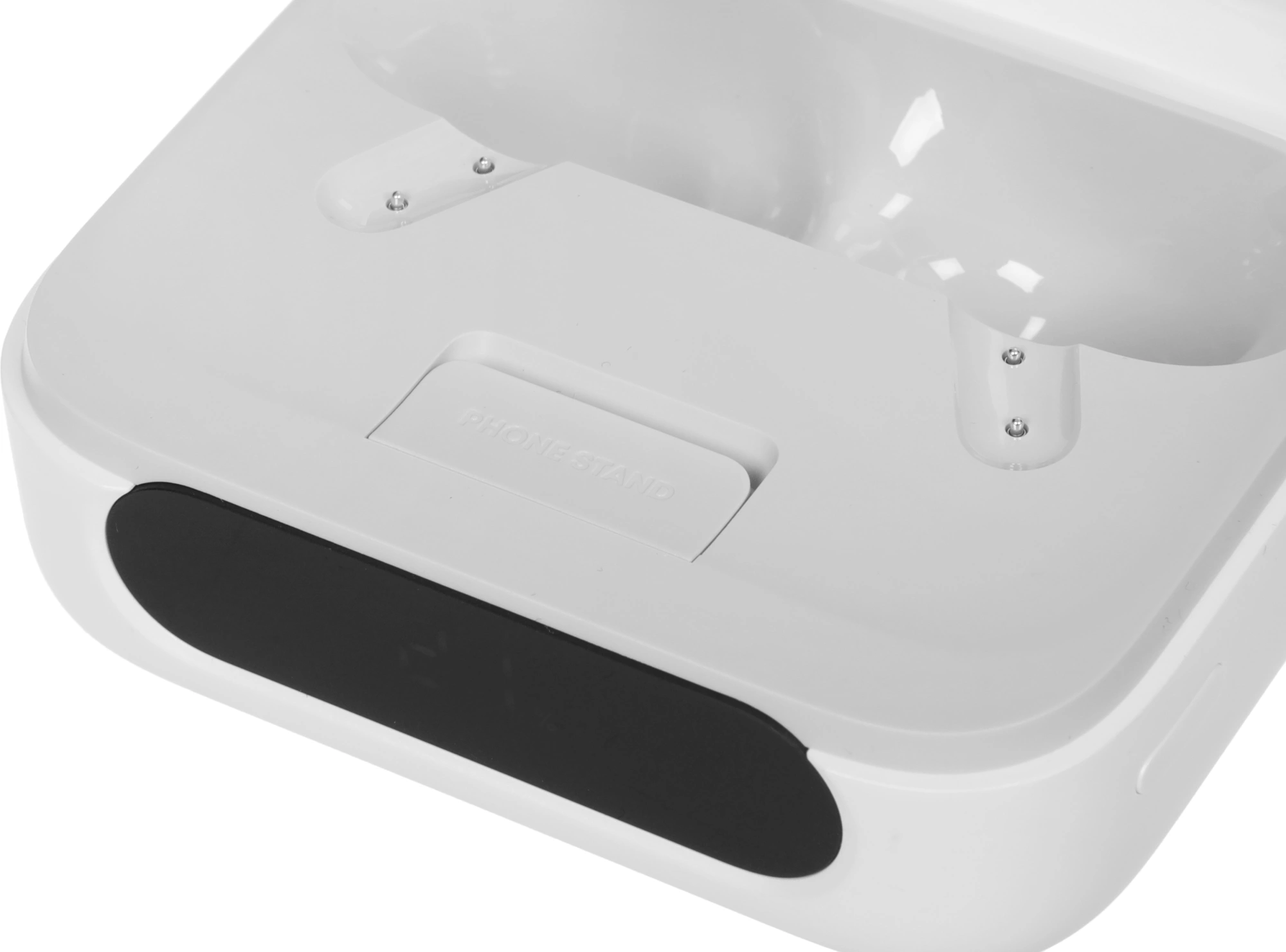 Встроенный пауэрбанк на 3 000 мА·ч — кейс для зарядки одновременно служит внешним аккумулятором для смартфона. Выдвижная подставка для комфортного просмотра контента, которая автоматически складывается при закрытии кейса. 6 микрофонов с ИИ-обработкой