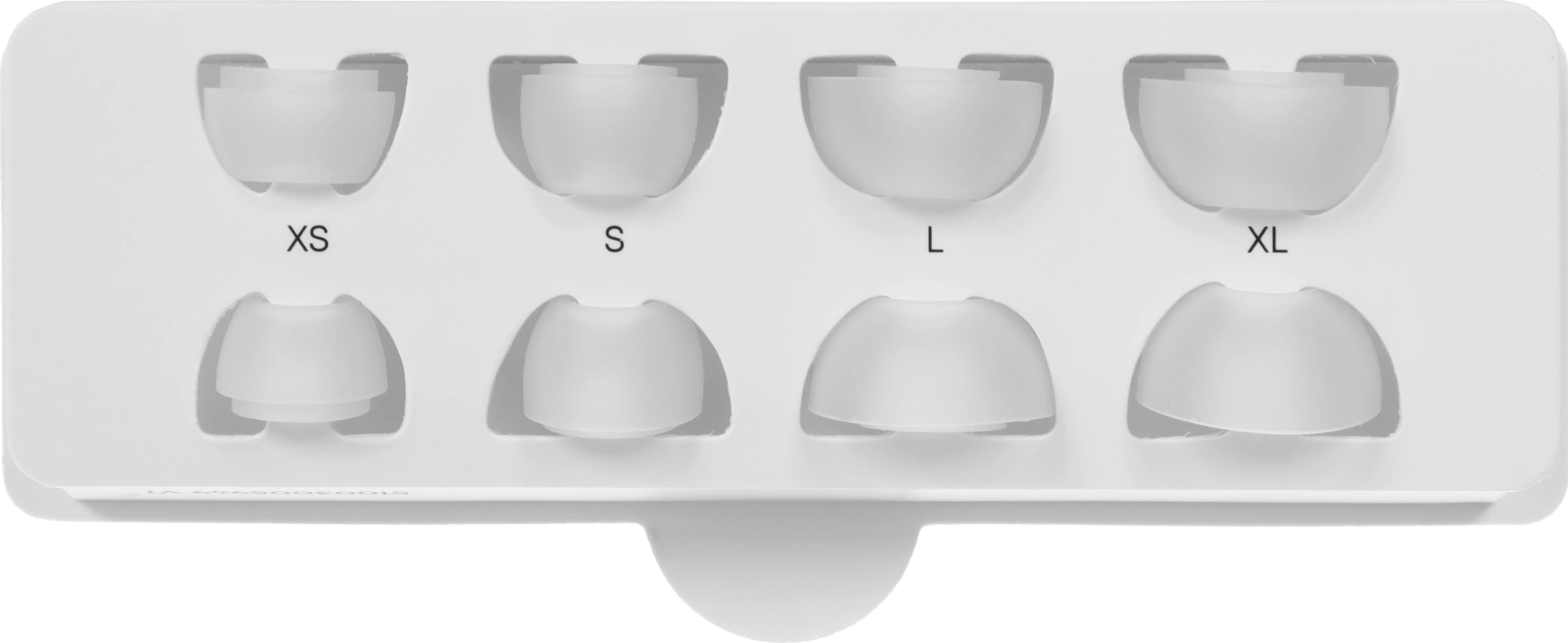 наушники; кейс со встроенным кабелем USB-C; сменные насадки; документация.