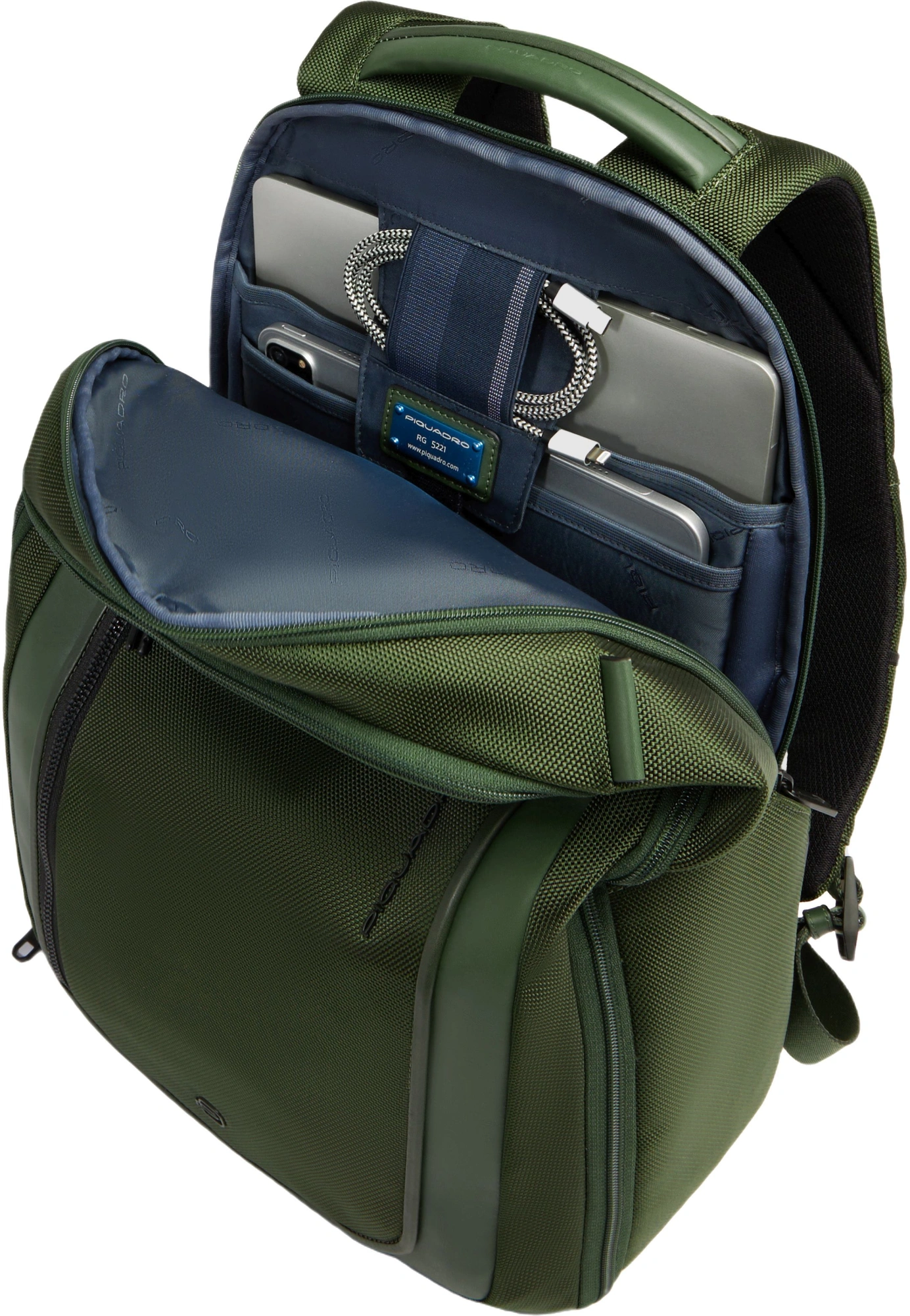 Рюкзак мужской Piquadro Lyss CA6928S143BM/VE зеленый тимьяновый полиуретан/полиэстер/натур.кожа