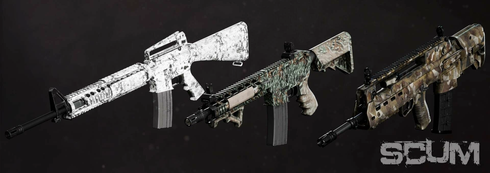Представляем пакет скинов для оружия SCUM! Это косметическое DLC позволит вам изменить внешний вид оружия, чтобы лучше замаскировать его и не найти при падении, или выразить на нем свою индивидуальность.
