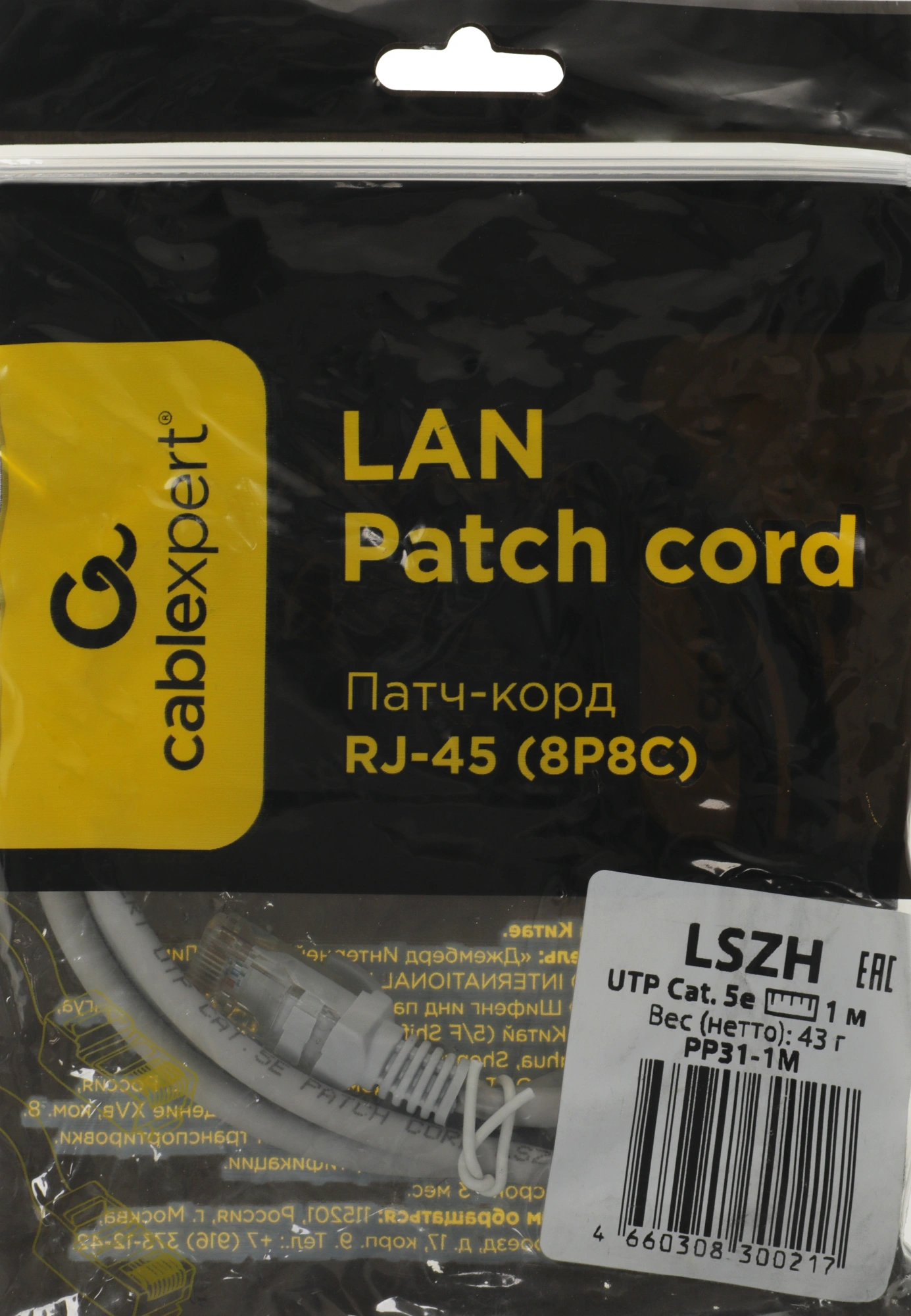 1Гбит/с UTP 4 пары cat.5E Cu molded 1м серый RJ-45...