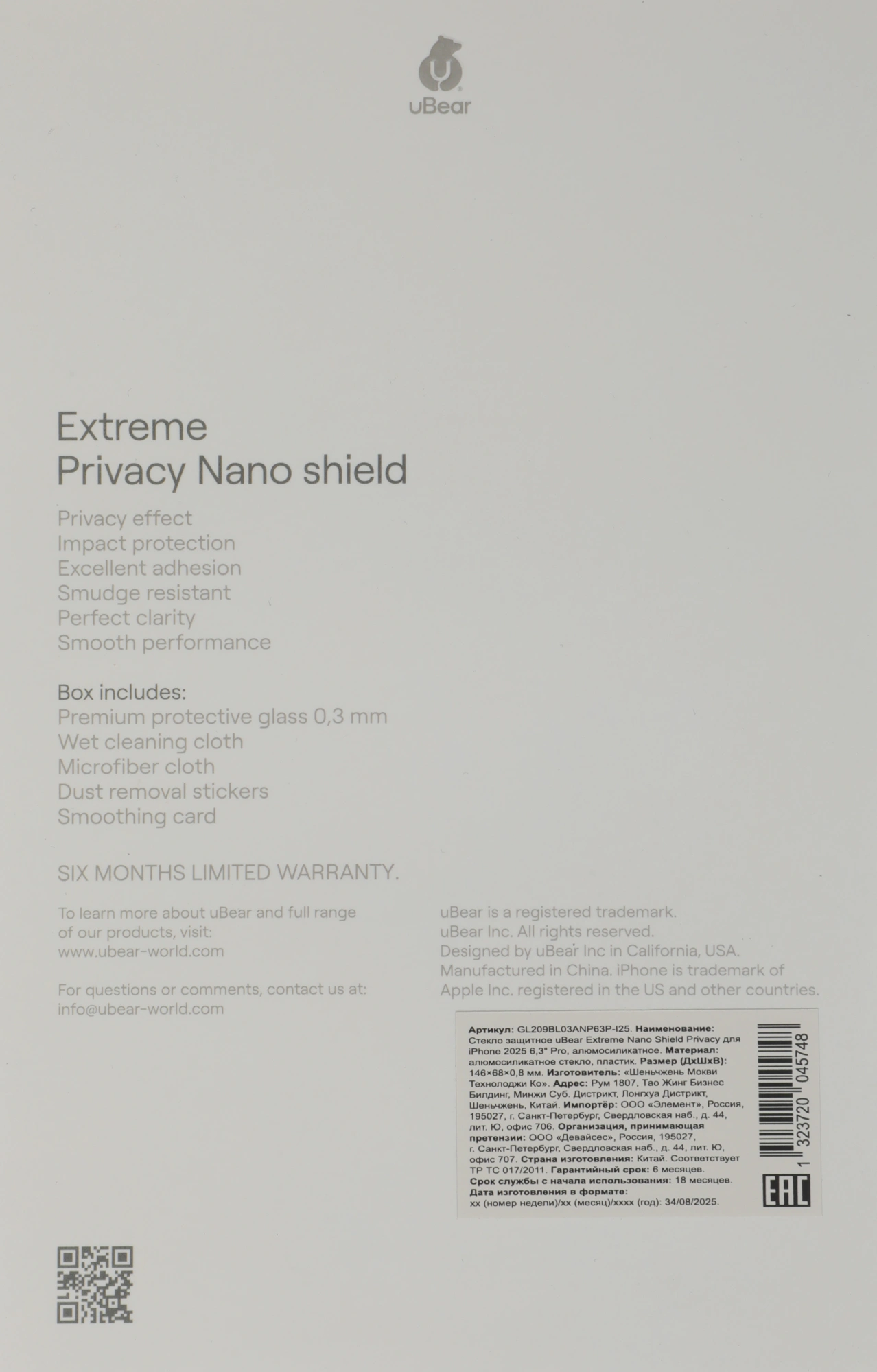прозрачный для Apple iPhone 17 Pro конфиденциальна...