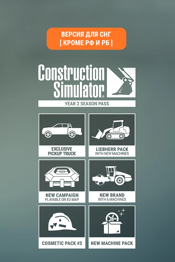 Начинается второй год. Получите еще больше впечатлений от Construction Simulator с абонементом Year 2 Season Pass! Вас ждут новые машины от трех известных производителей, еще одно четырехместное пассажирское авто, а также новая кампания контрактов, которая подарит многие часы веселья.
