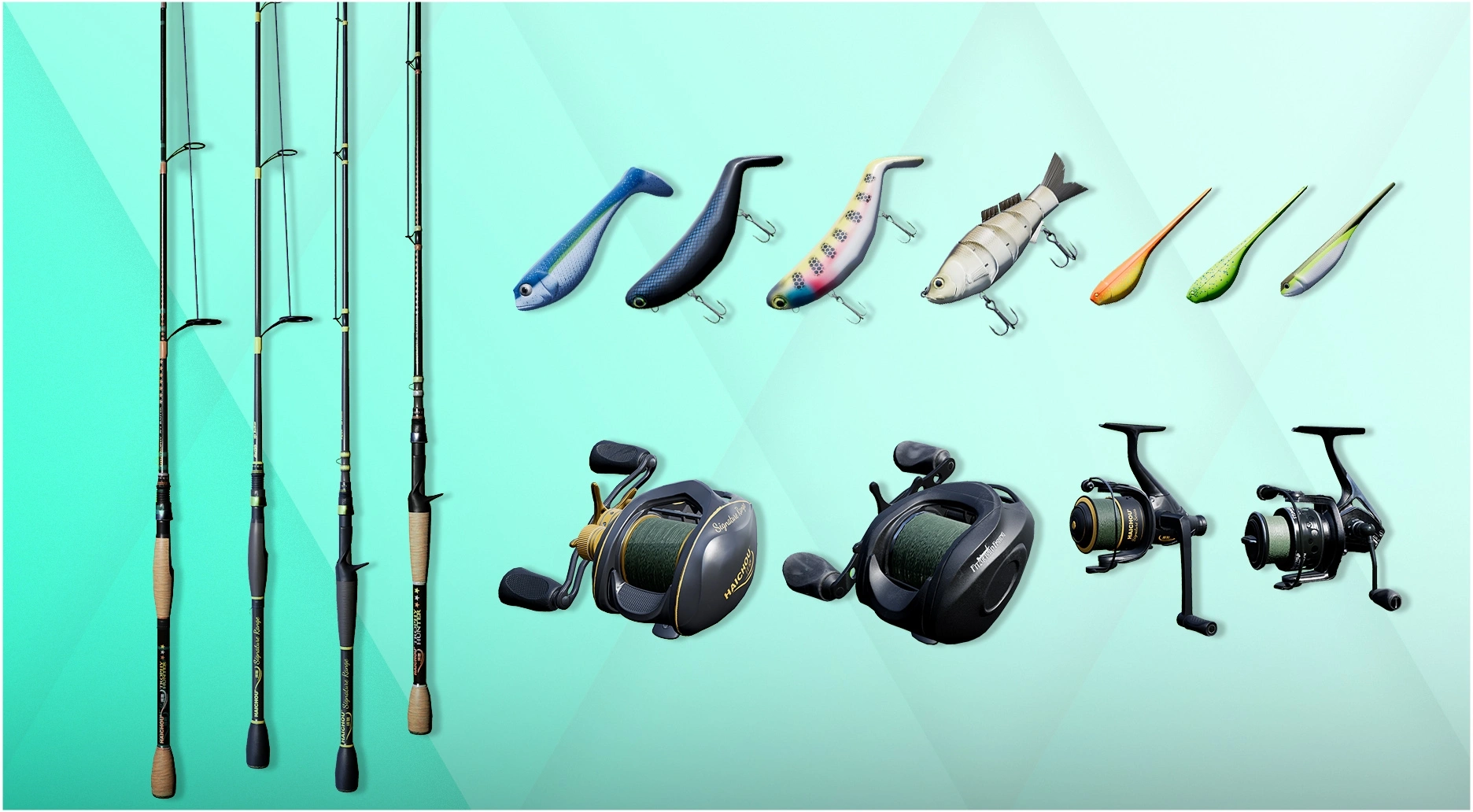 Лицензированный набор из 30+ предметов: летайте по озеру на лодке Puma от Bass Cat с двигателем Evinrude и поймайте самую большую рыбу в Fishing Sim World!