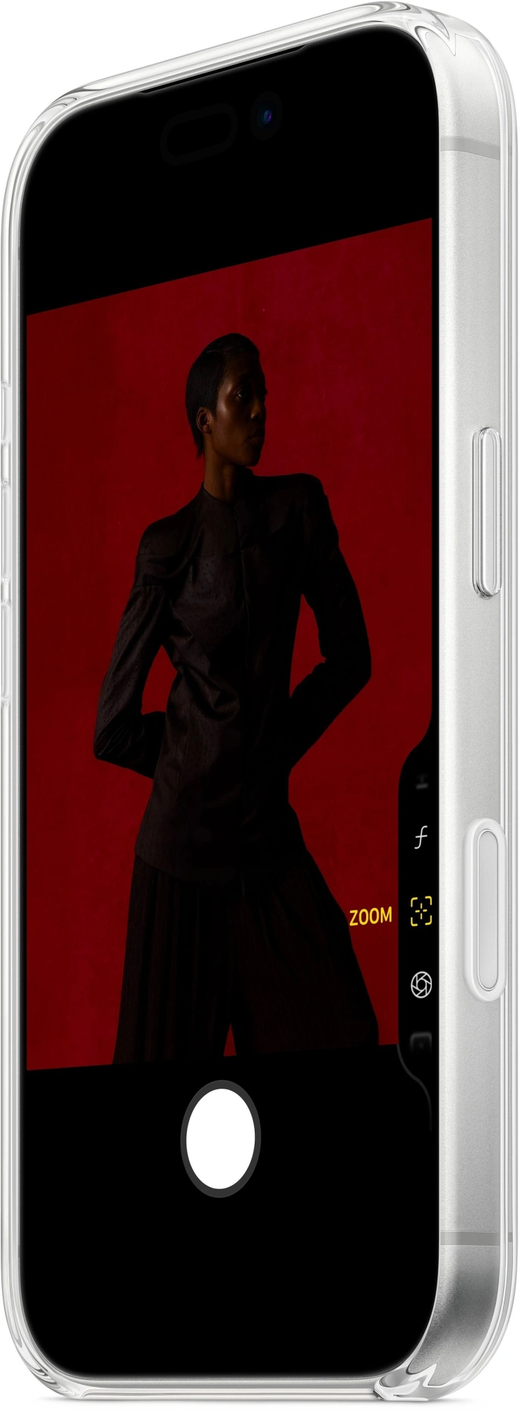 Чехол, изготовленный из смеси прозрачного поликарбоната и гибких материалов. Он идеально сочетается с функцией Camera Control. Он оснащен сапфировым стеклом, соединенным с проводящим слоем, для передачи движений пальцев на функцию Camera Control.