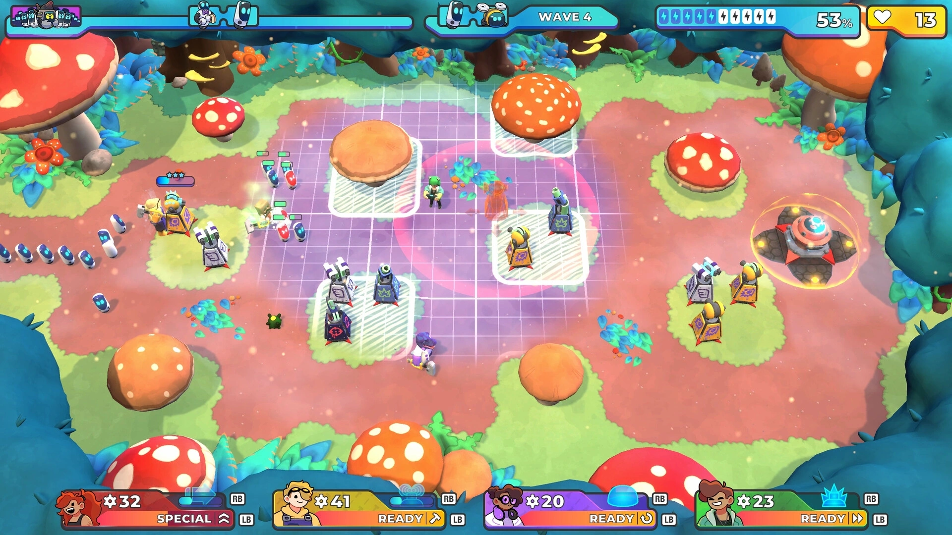 Bish Bash Bots — это уникальное сочетание жанров: защита крепости, стратегия и массовая драка. Соберите команду из игроков рядом или по сети либо отправляйтесь в битву за спасение мира в одиночку. Стройте улучшаемые турели, открывайте гаджеты и бейте роботов огромными молотами.