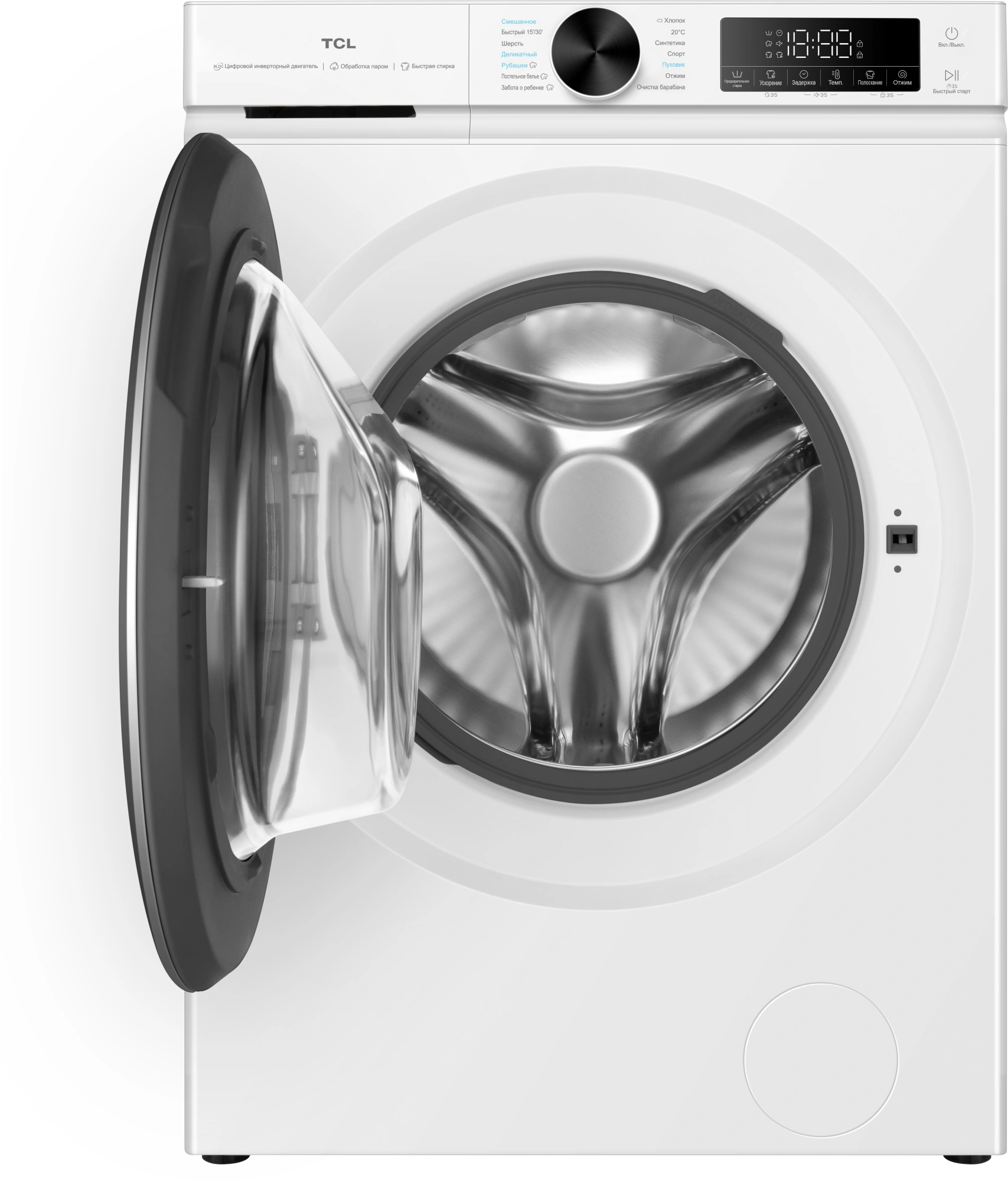 Быстрая стирка, Гигиеническая стирка, Деликатная стирка, Отжим, Очитска барабана, Постельное бельё, Пуховик (с паром), Рубашки, Синтетические ткани, Смешанная стирка, Спортивная одежда, Стирка при 20 градусах, Холопок (с паром), Шерсть (с паром), Стиркам паром, Magic Flow.