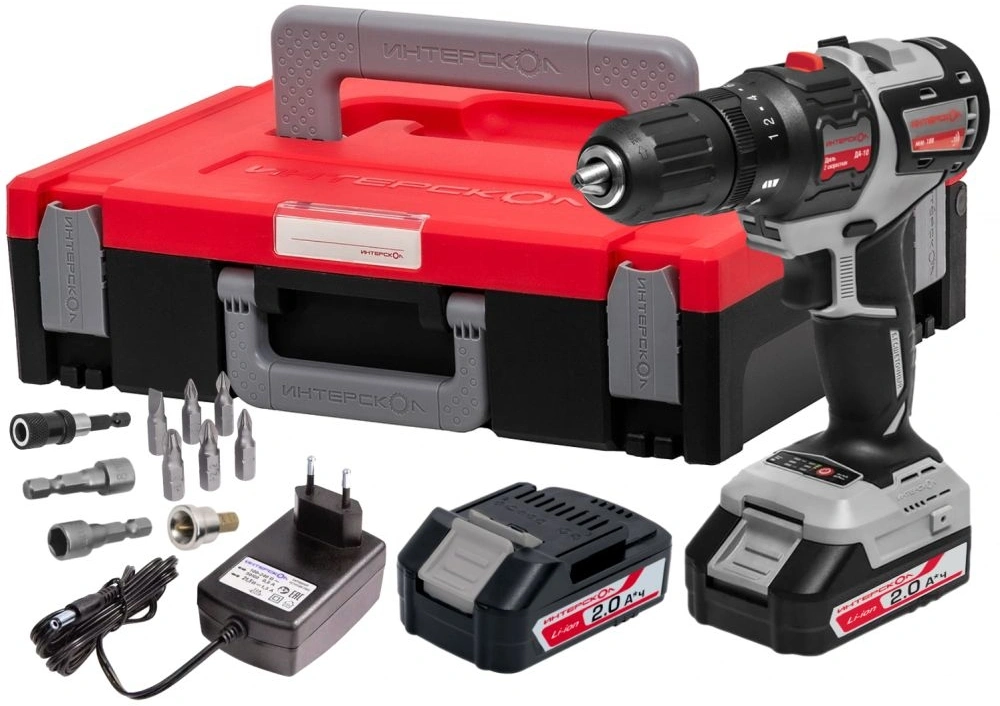 Дрель-шуруповерт, 2 АКБ 2 Ач, зарядное устройство, набор бит.