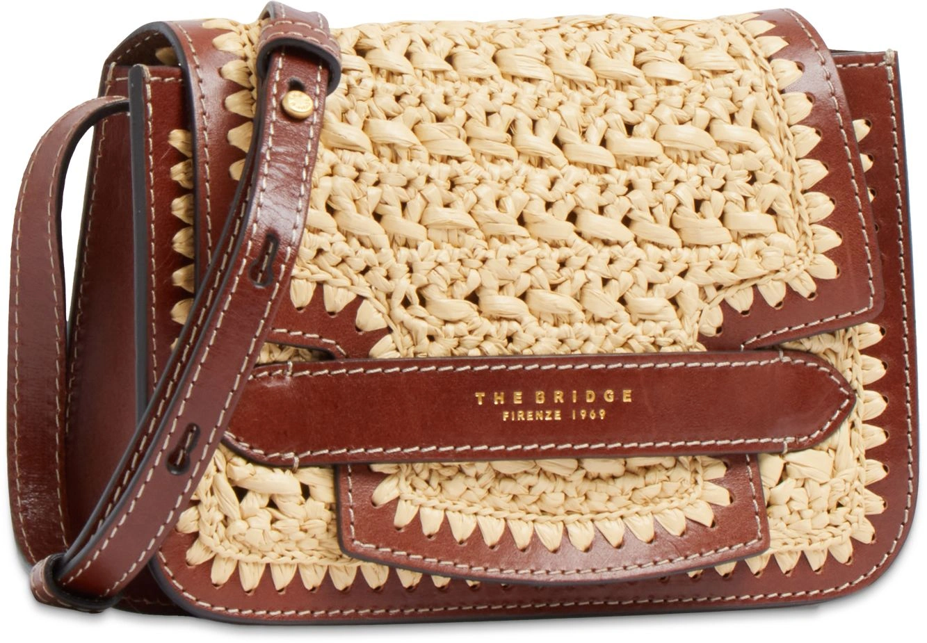 Сумка кросс-боди женская The Bridge Lucrezia Wow 041920KW/14 коричневая/бежевая натур.кожа/рафия
