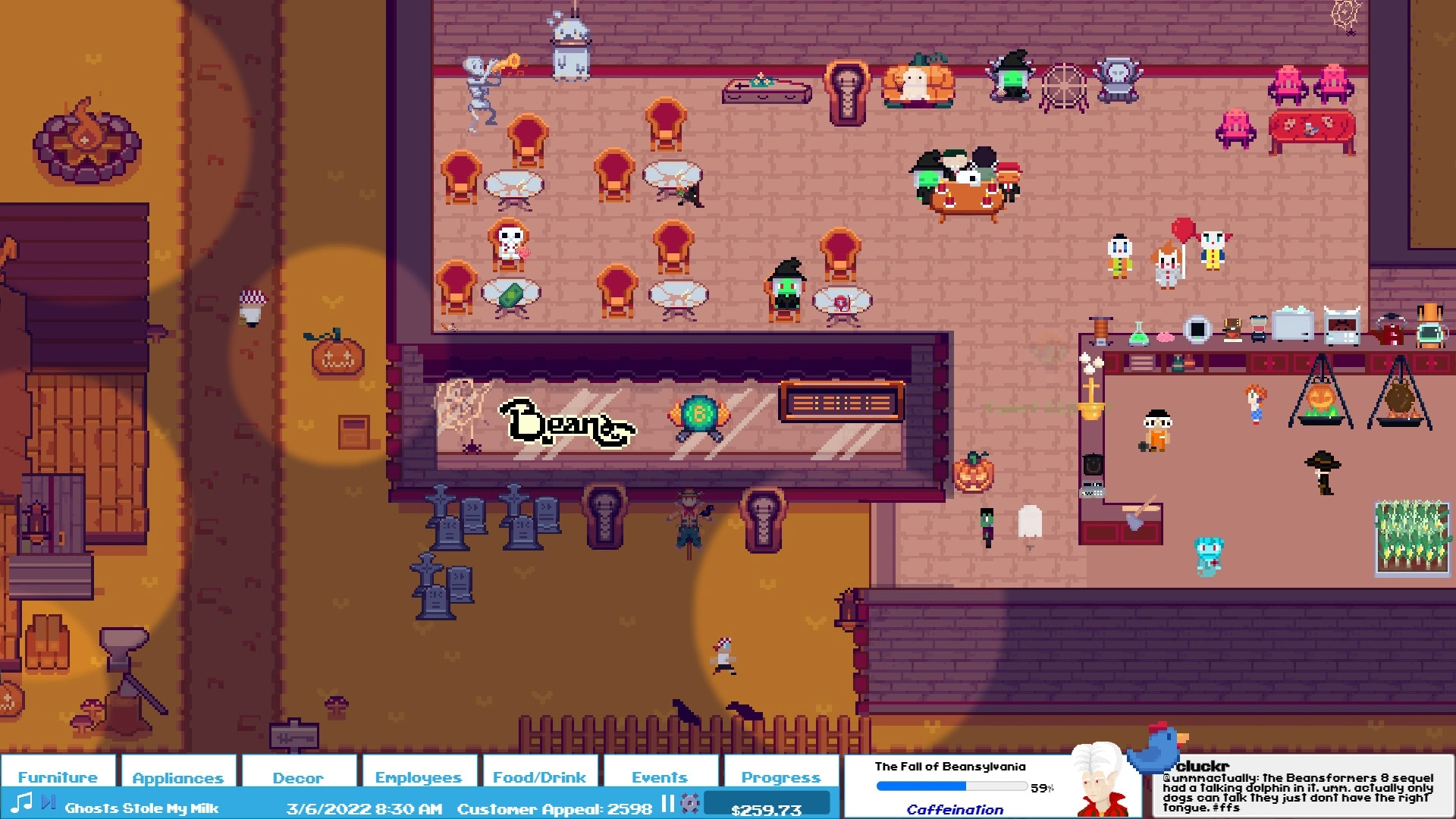 Beans — это сардоническая игра-симулятор «магната» о хипстерах, управляющих кофейней, полной мрачных каламбуров, кофе, чиптюнов и тайн!.