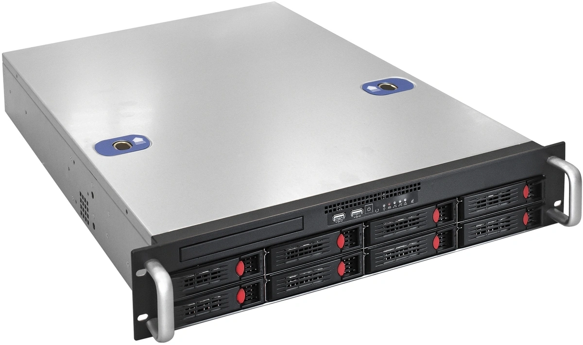 Корзина на 8 дисков SAS/SATA 2.5/3.5. Рельсы в комплекте.В базовой комплектации не поддерживаются SAS – диски, для поддержки требуется установка аппаратного рейд-контроллера.