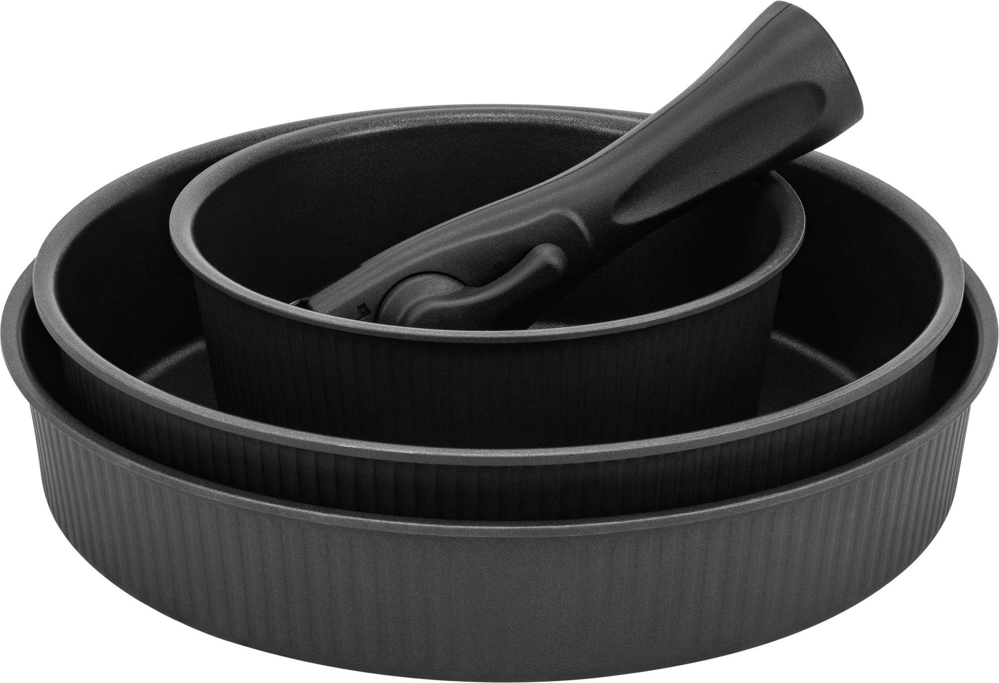 сковорода глубокая 24х6 см, сковорода 26х5 см , ковш 16х7 см, съемная ручка