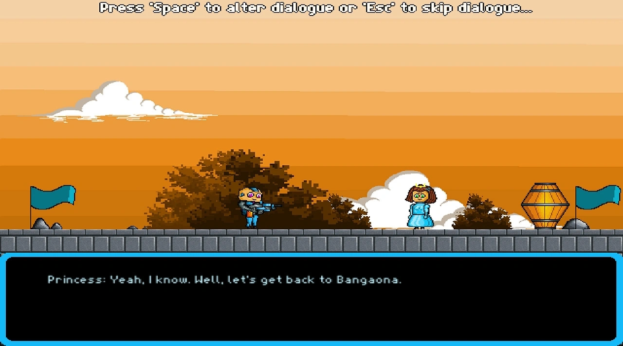 The Hero of Bangaona — это 2D-игра с боковой прокруткой, в которой вы играете за Героя королевства Бангаона, чья миссия состоит в том, чтобы захватить вражеские базы, чтобы спасти принцессу, похищенную солдатами территории Вайнс.