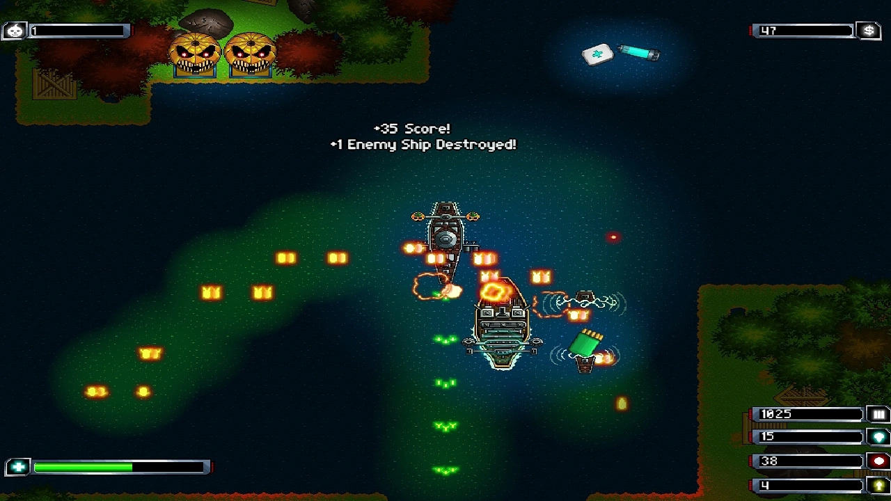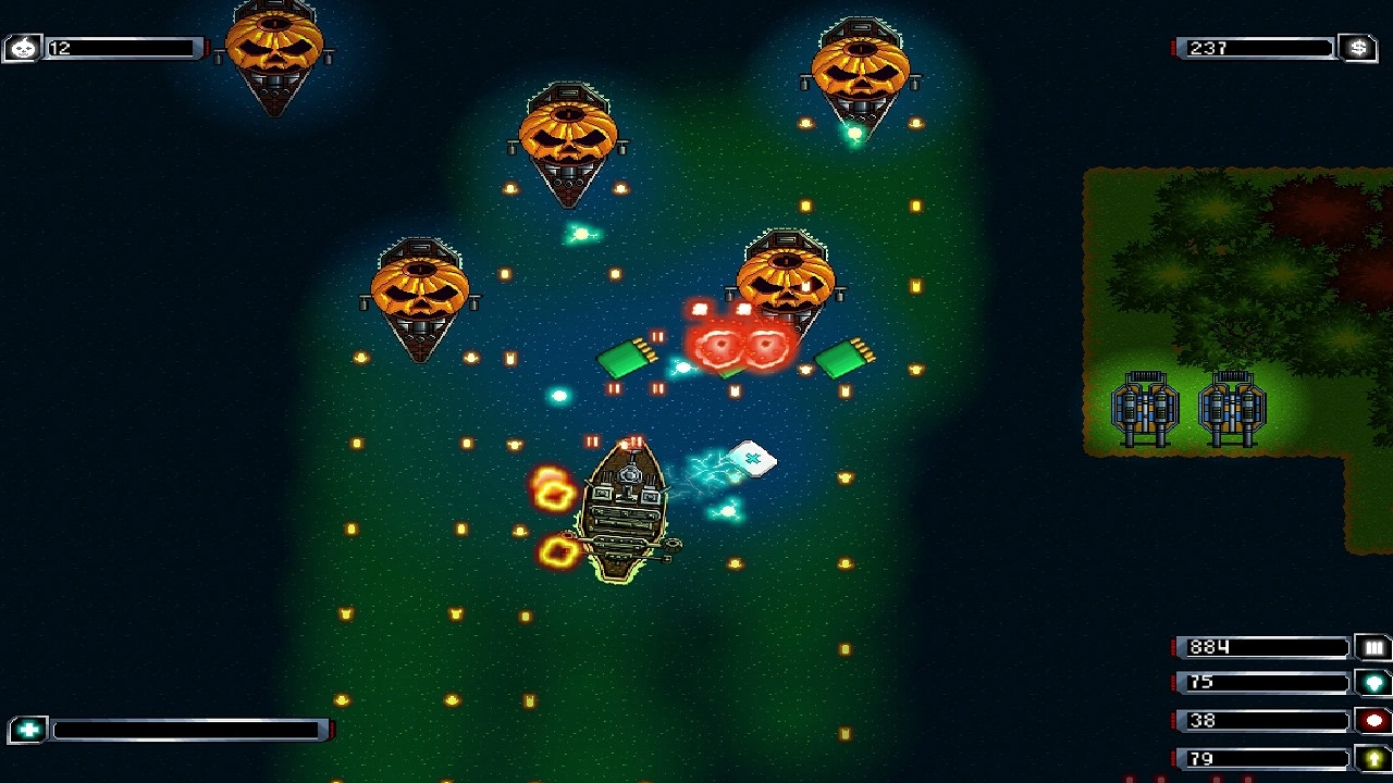 Warships On The Halloween Night - это экстремальная аркадная игра-шутер Top Down, основанная на морской войне, которая разразилась между людьми и живыми тыквами.