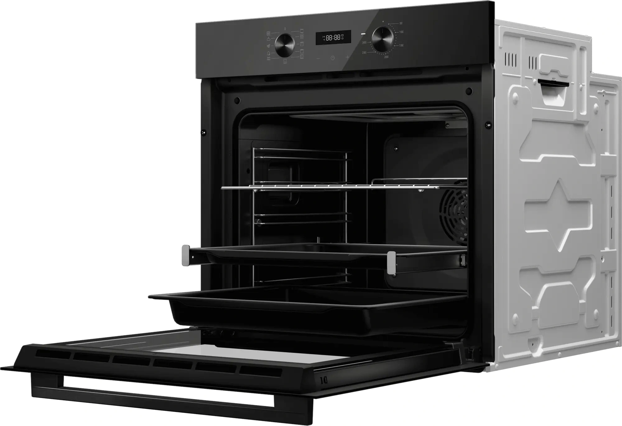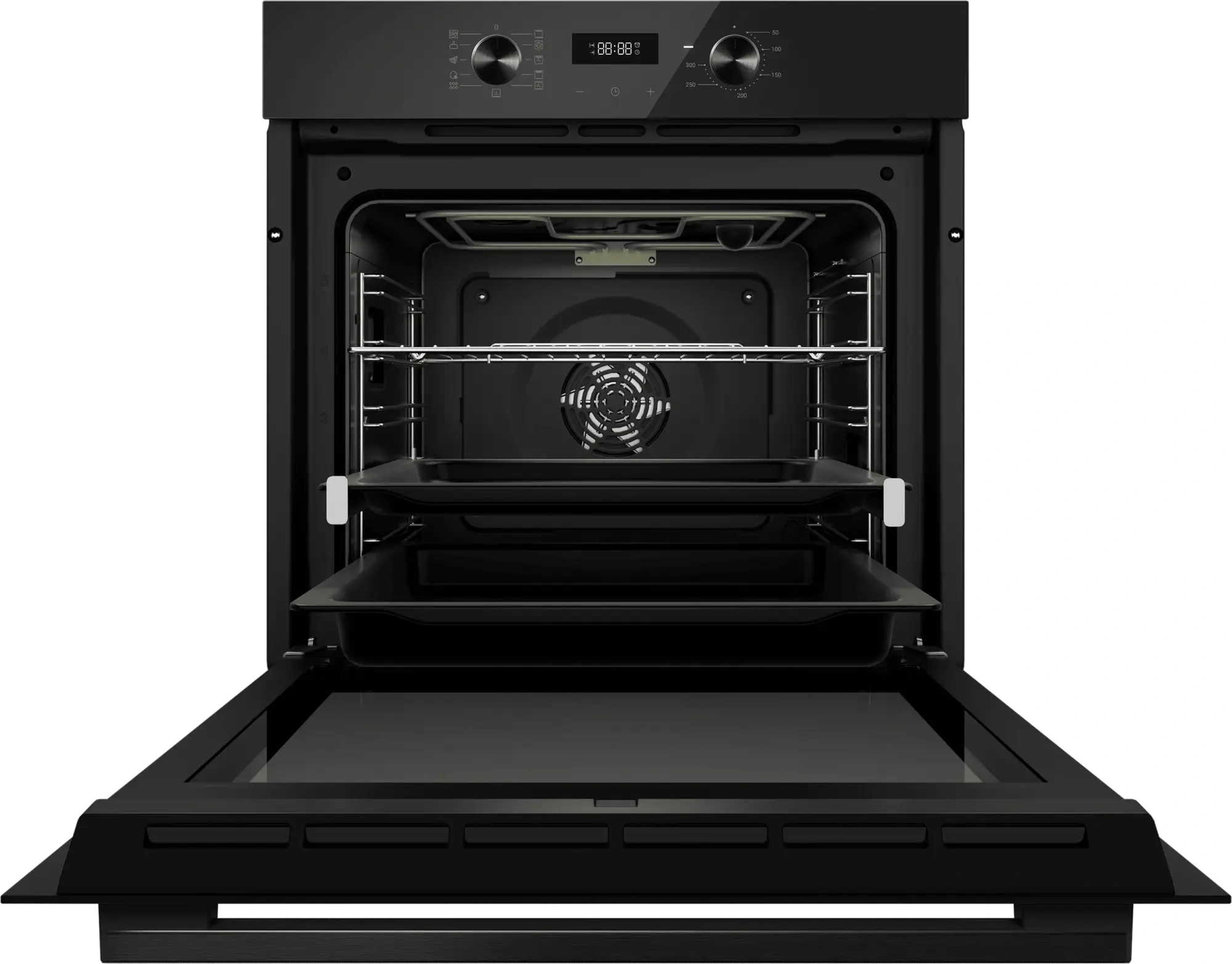 дисплей, полностью стеклянная внутренняя поверхность дверцы духовки, телескопические направляющие, утапливаемые переключатели