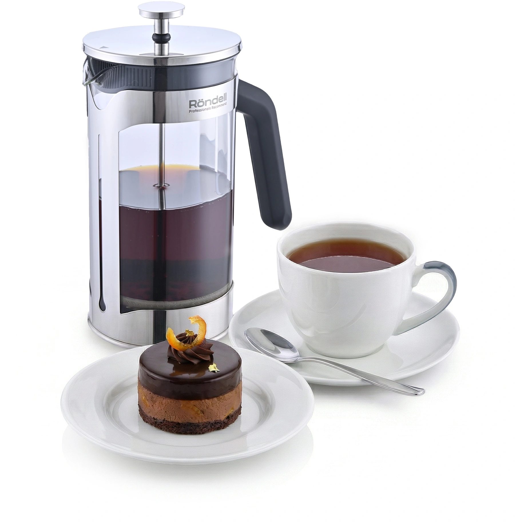 Френч-пресс коллекции Tessaro сочетает стиль и удобство. Держатель из нержавеющей стали, эргономичная ручка из ABS-пластика с покрытием soft touch и жаропрочная стеклянная колба. Плотно прилегающий поршень гарантирует чистое, насыщенное заваривание без чаинок.