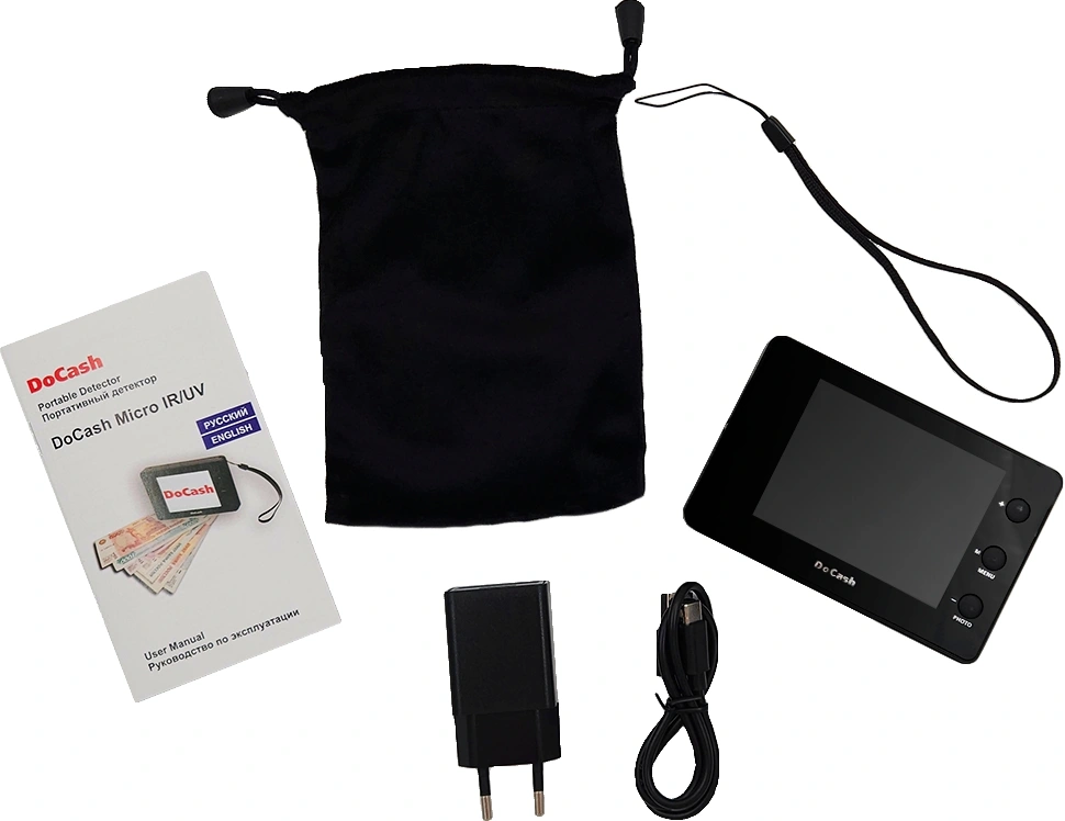 ИК и УФ контроль; Контроль спецэлемента "М"; Долгий срок работы без подзарядки (до 4,8 часов в активном режиме и до 540 часов в режиме ожидания); Большой 3,5" ЖК цветной дисплей; Индикация статуса заряда аккумулятора; Карманный размер; Ремешок в комплекте; Надёжный и прочный корпус.