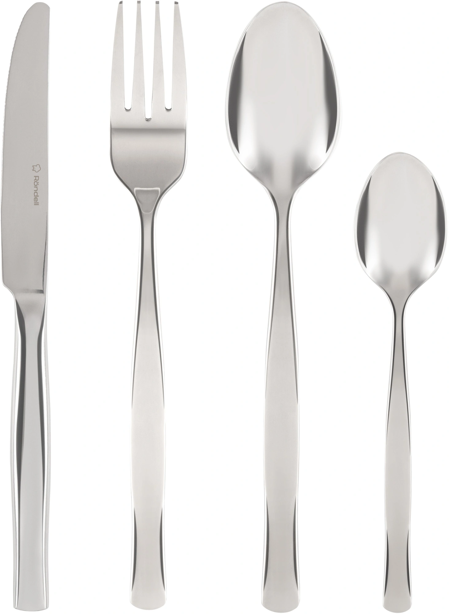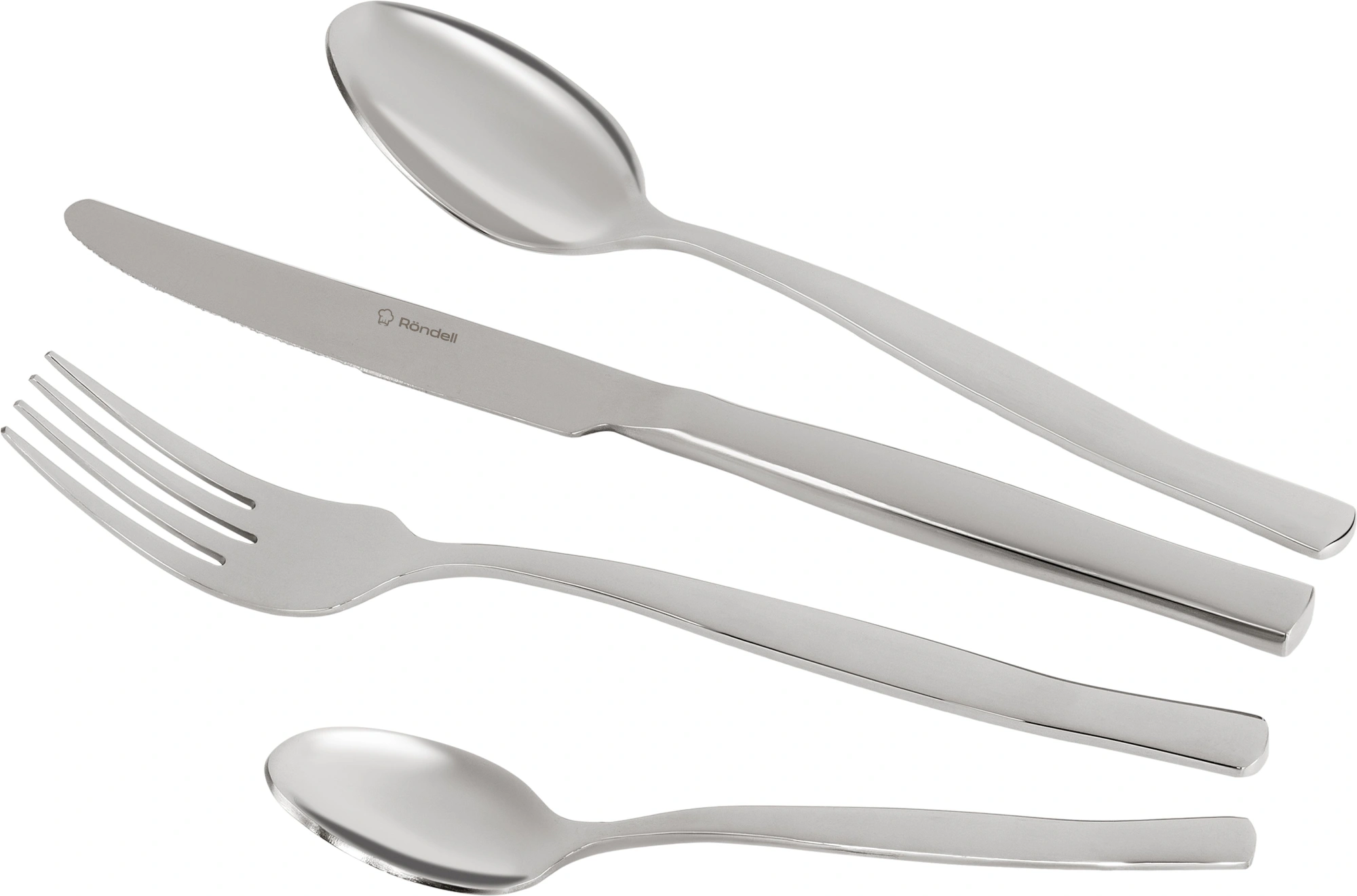 четыре вилок, четыре столовых ложек, четыре ножей и четыре чайных ложек