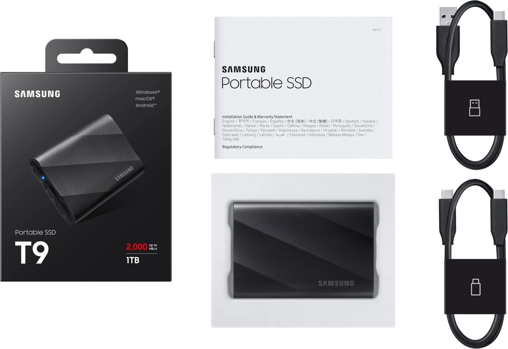 Внешний диск, кабели USB Type-C - USB Type-A и USB Type-C - USB Type-C, документация