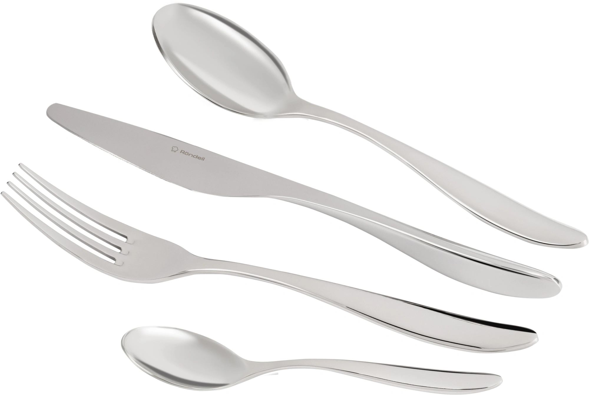 четыре вилок, четыре столовых ложек, четыре ножей и четыре чайных ложек