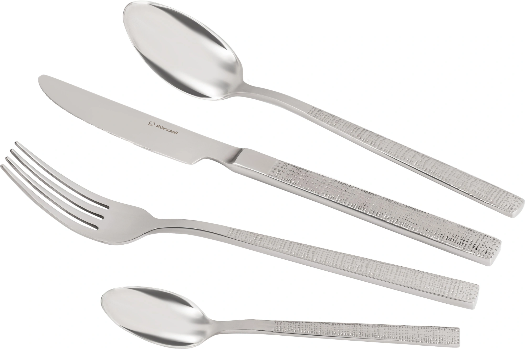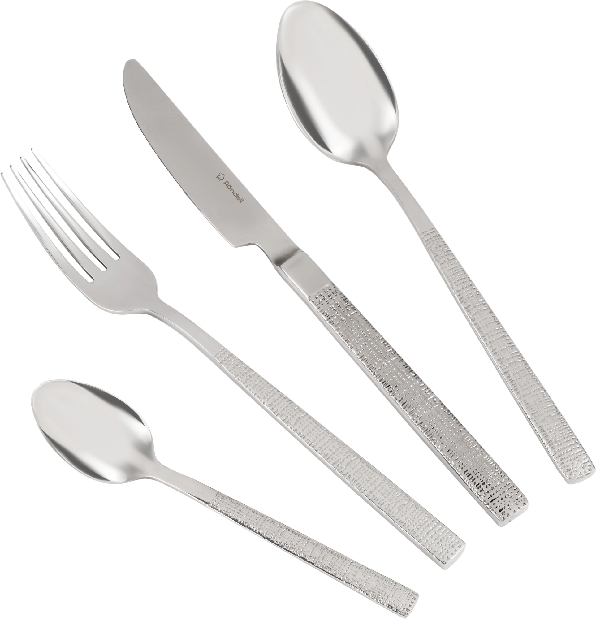 четыре вилок, четыре столовых ложек, четыре ножей и четыре чайных ложек