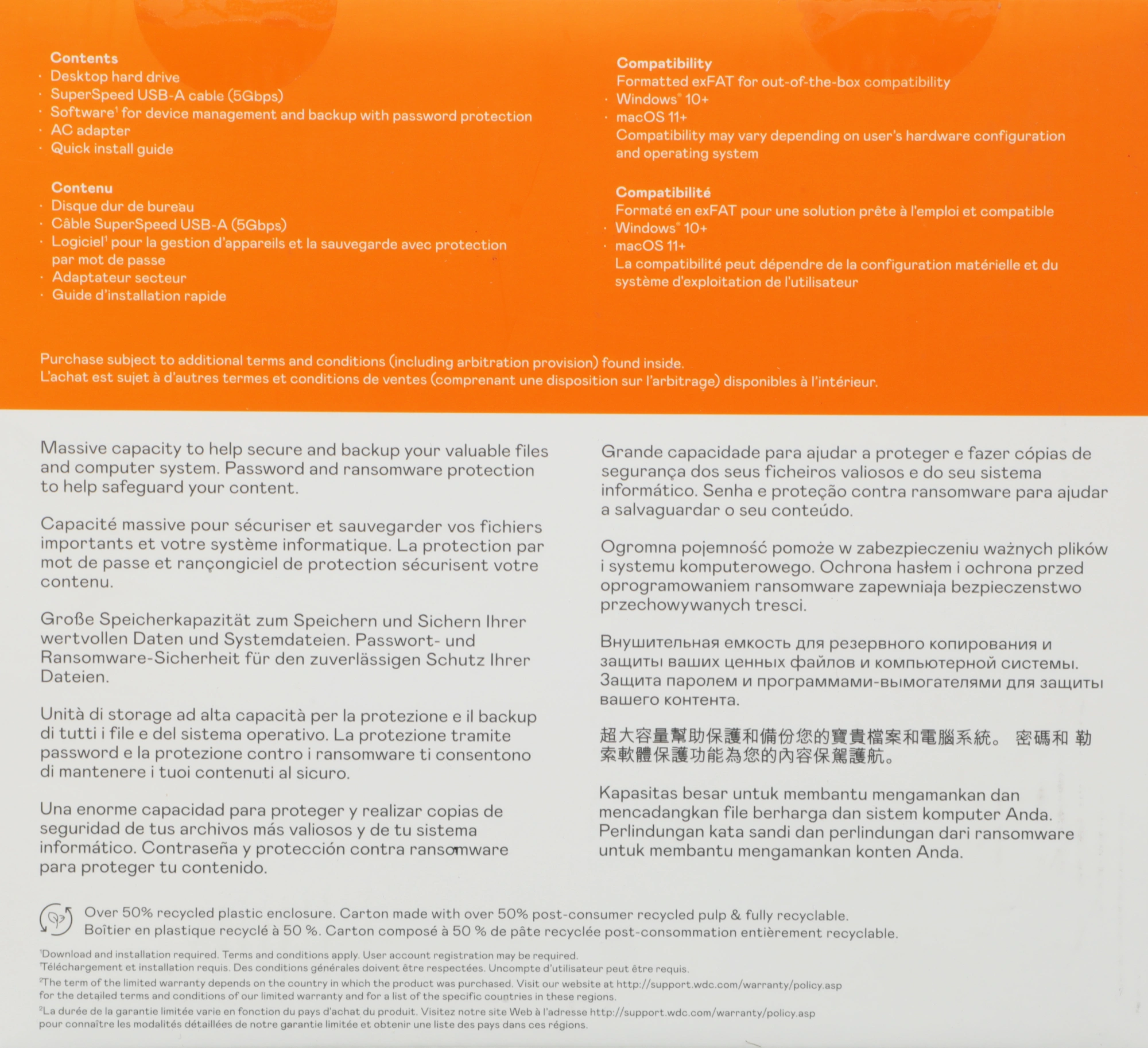 Настольный жесткий диск My Book, Кабель SuperSpeed USB-A (5 Гбит/с),ПО для управления устройствами и резервного копирования, Сетевой блок питания,Краткое руководство по установке