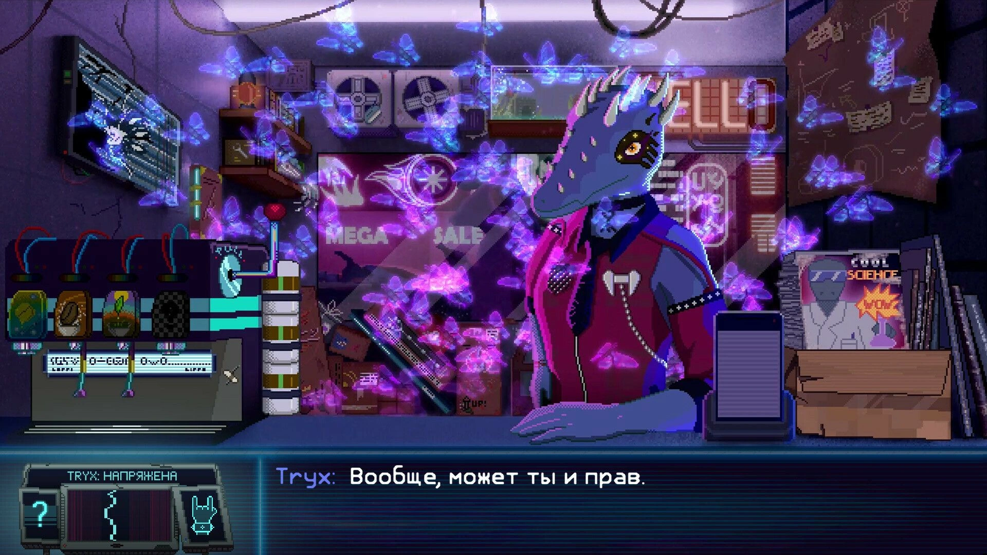 Dynopunk — это ироничное приключение в эстетике киберпанка в мире, где место людей заняли динозавры.