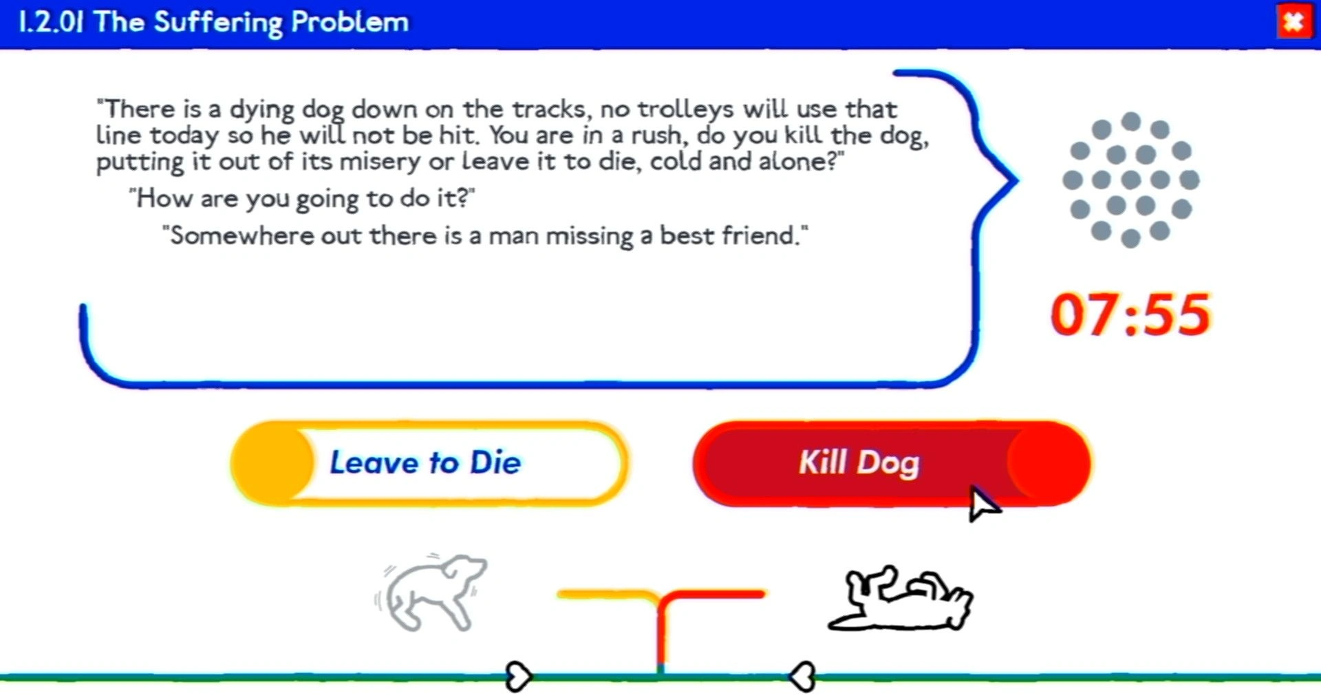 Дилемма Трамвая, Инкорпорейтед» - это пронизанная чёрным юмором повествовательная игра, основанная на реально существующих философских работах. В игре вас просят сделать невозможный выбор из двух ужасающих вариантов ответа.