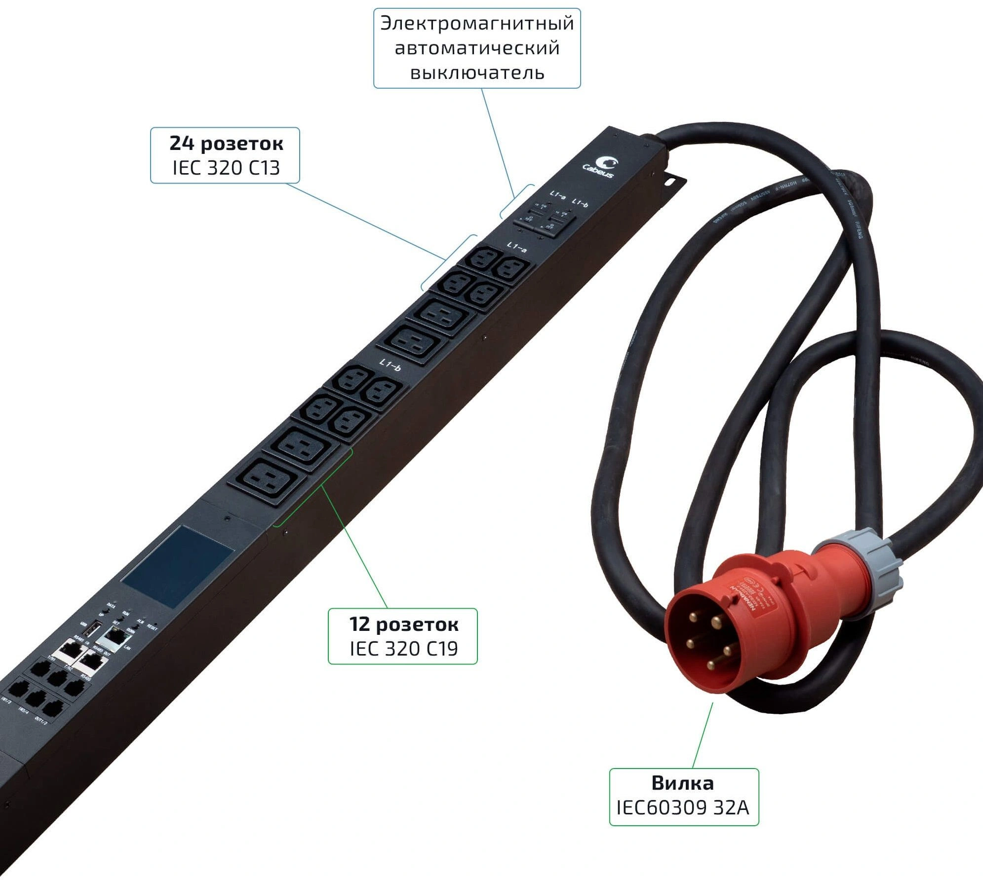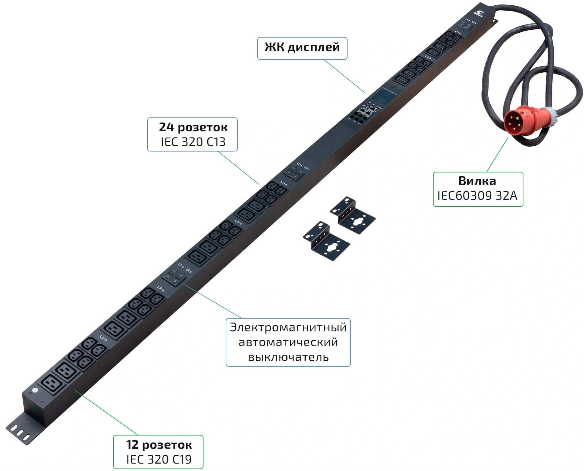 верт.размещ. 24xC13 12xC19 с мониторингом 32A IEC ...