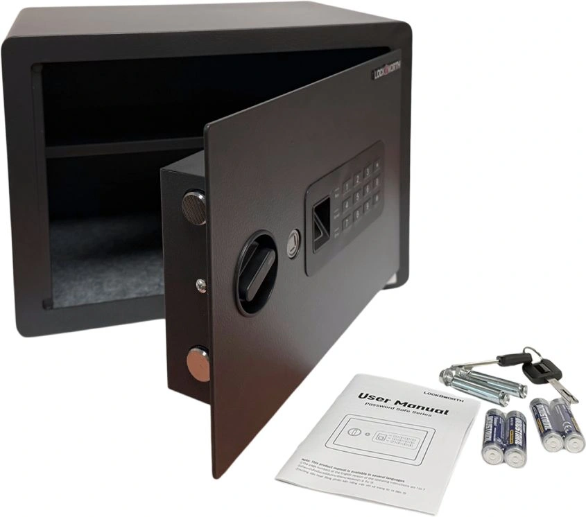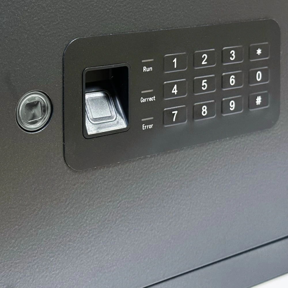 Сейф с биометрией, 2 ключа, крепление, батарейки - 4 шт., инструкция.