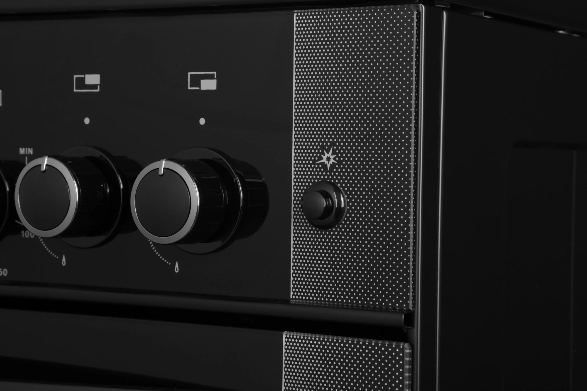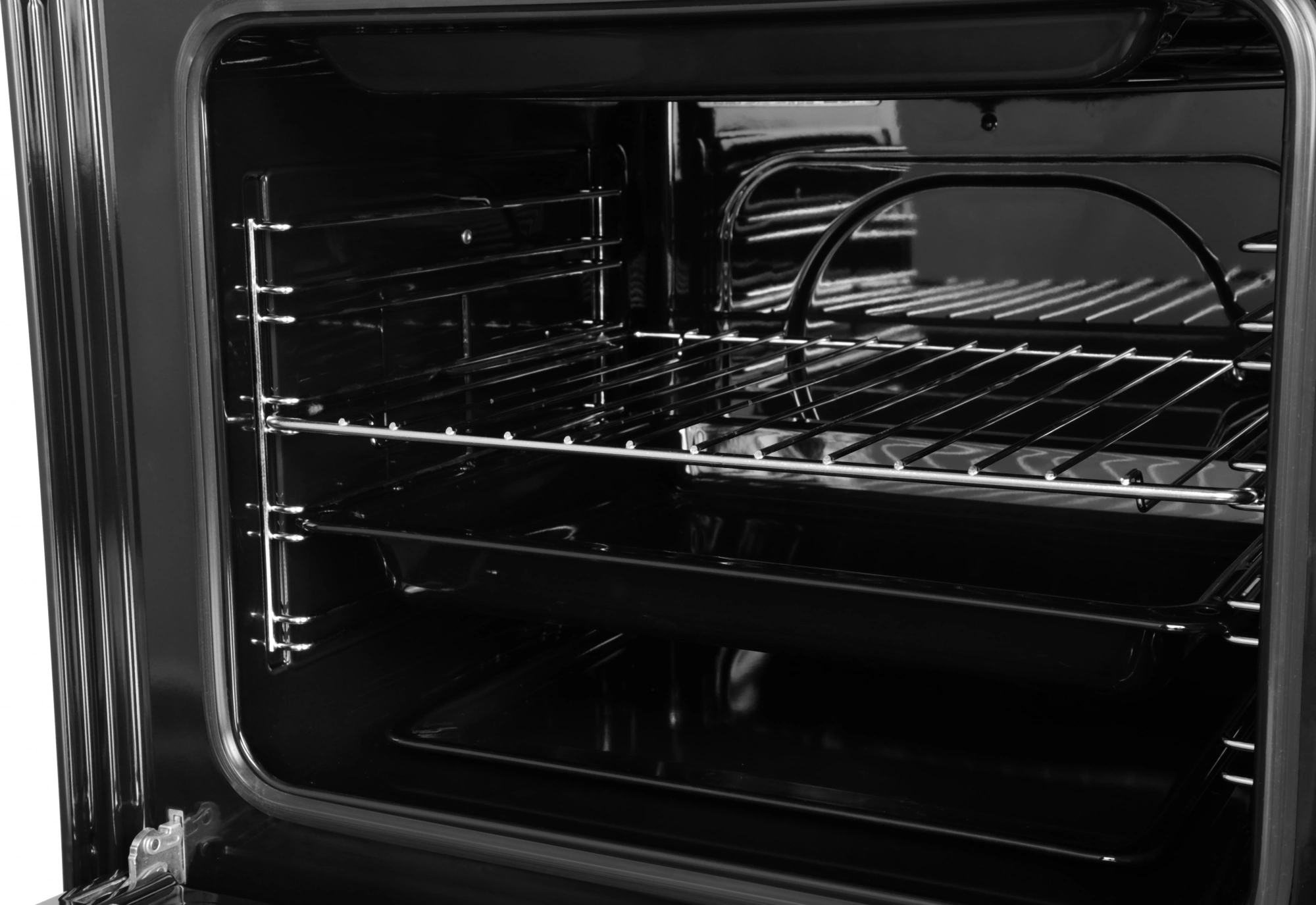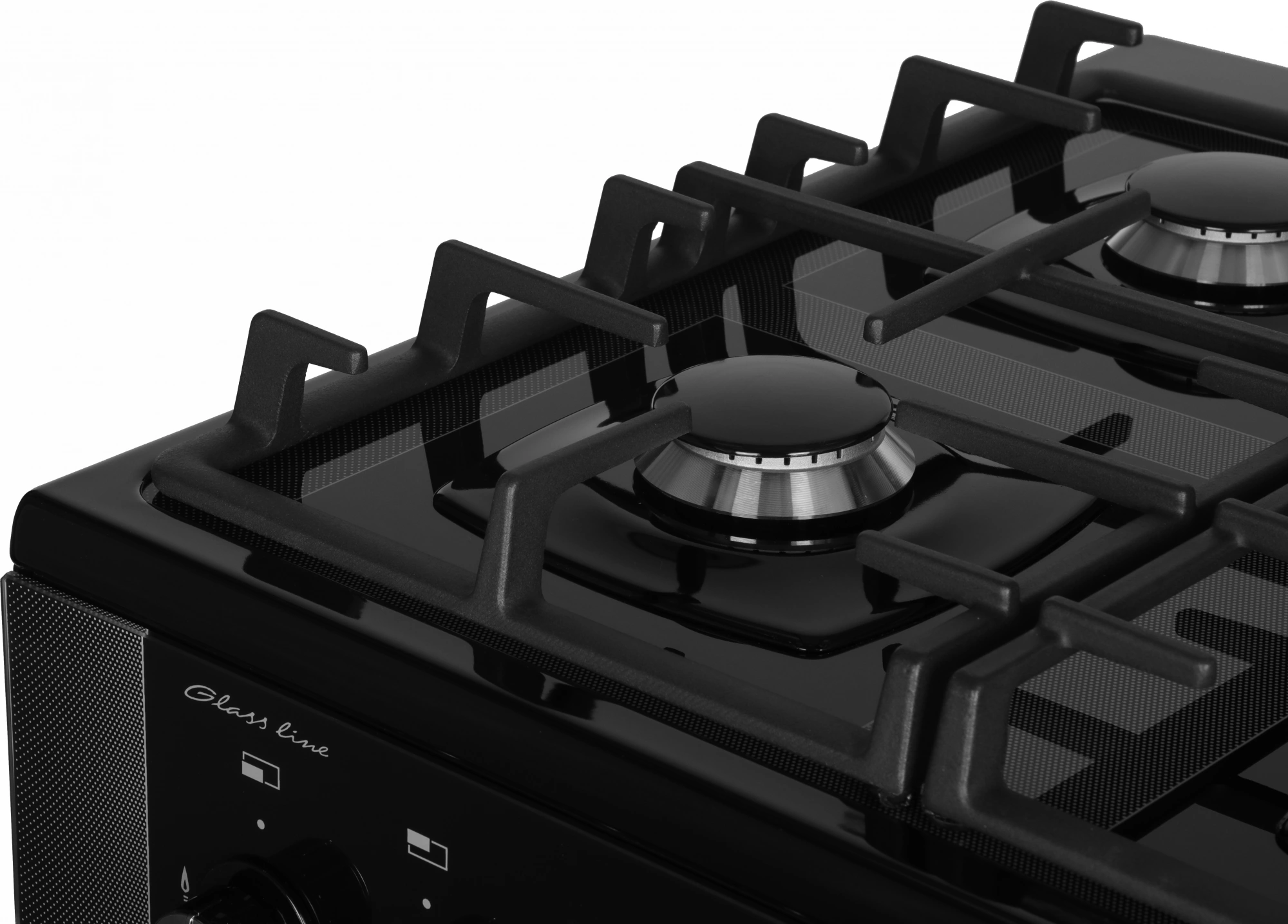 Вертел с электроприводом. Ножки регулировочные. Проволочные направляющие. Терморегулятор (термостат). Электророзжиг горелок, кнопка розжига на панели. Мощность гриля - 1200 Вт.