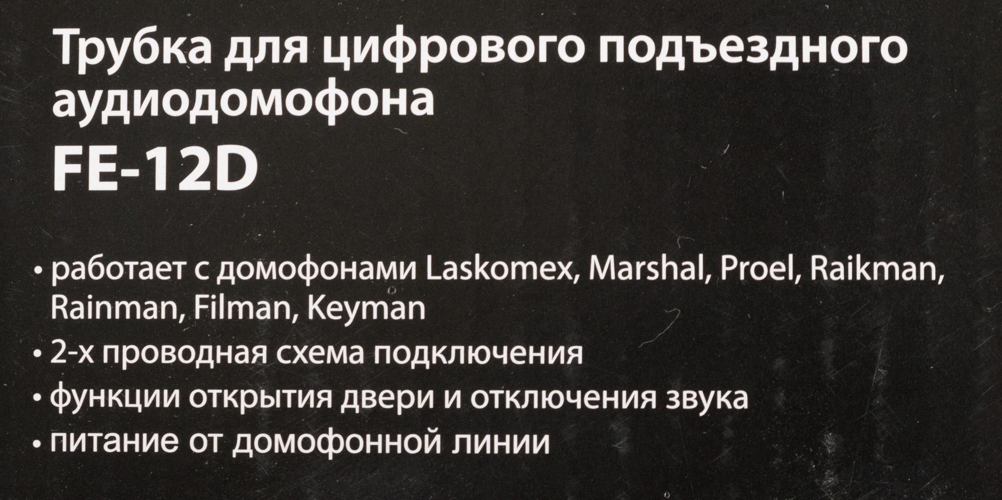FE-12D цифровая аудио трубка, для подъездного аудио домофона с 2-х проводной системой подключения. Трубка предназначена для использования с домофонами Lascomex, Marshal, Proel, Raikman, Raiman, Filman, Keyman.