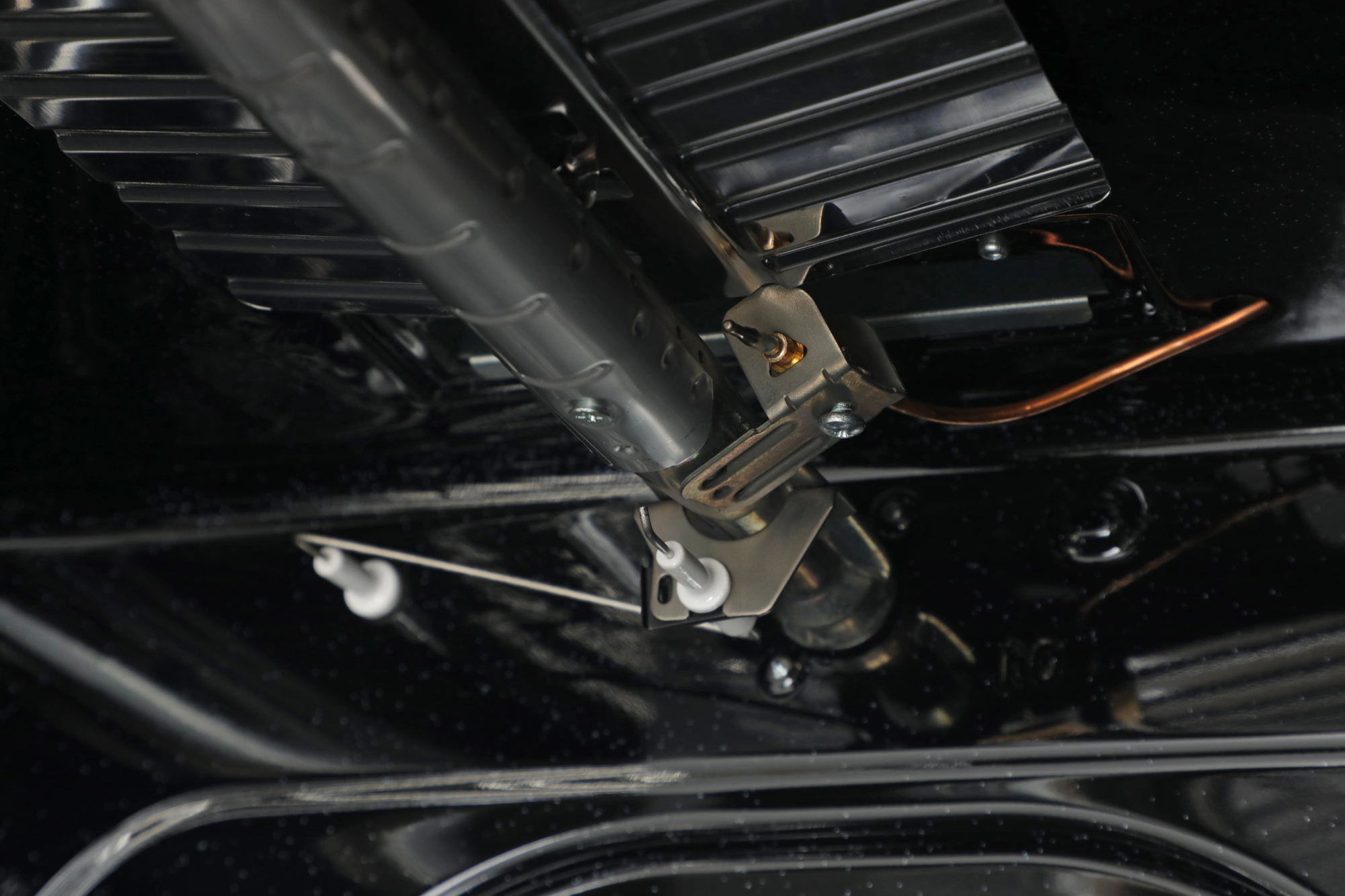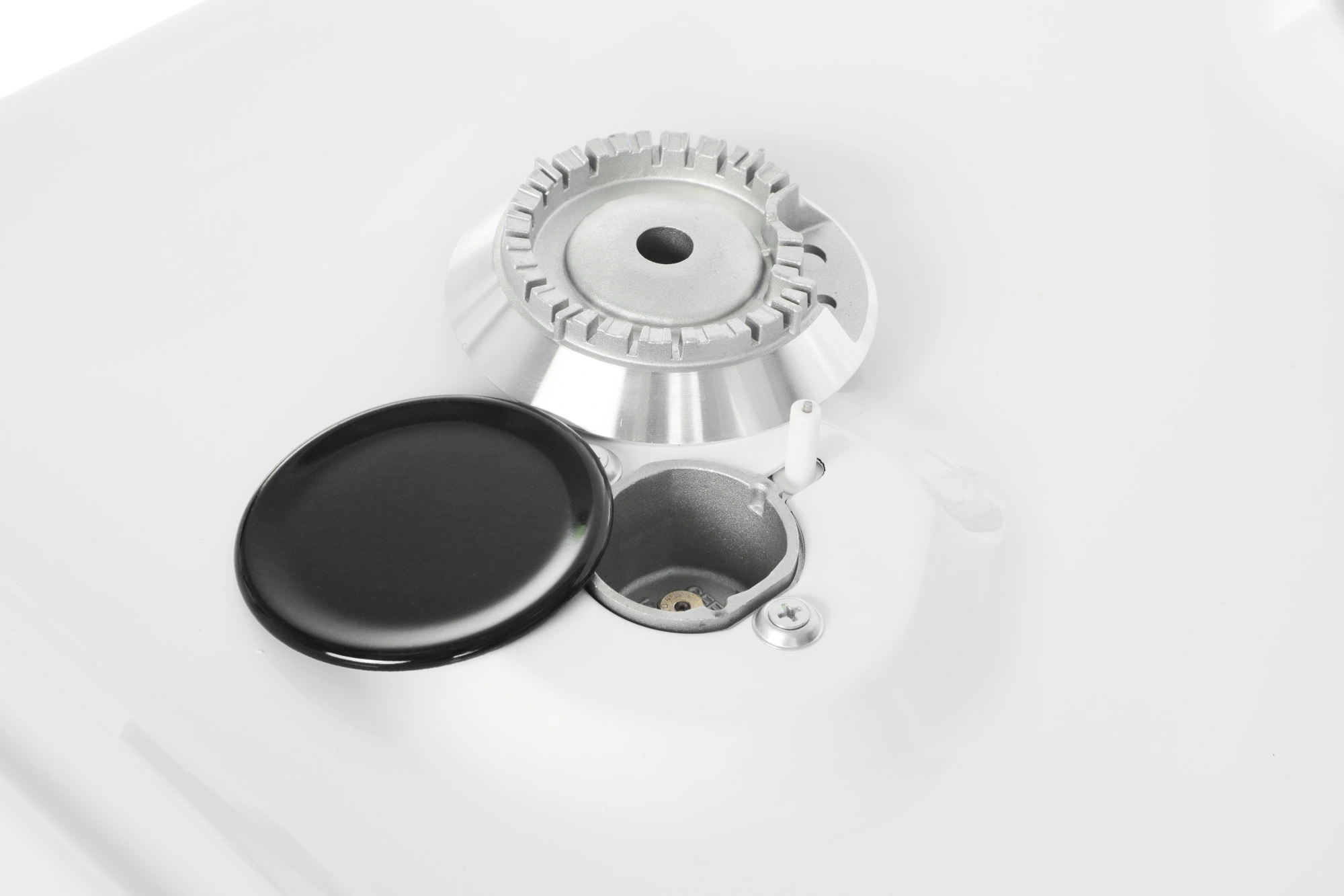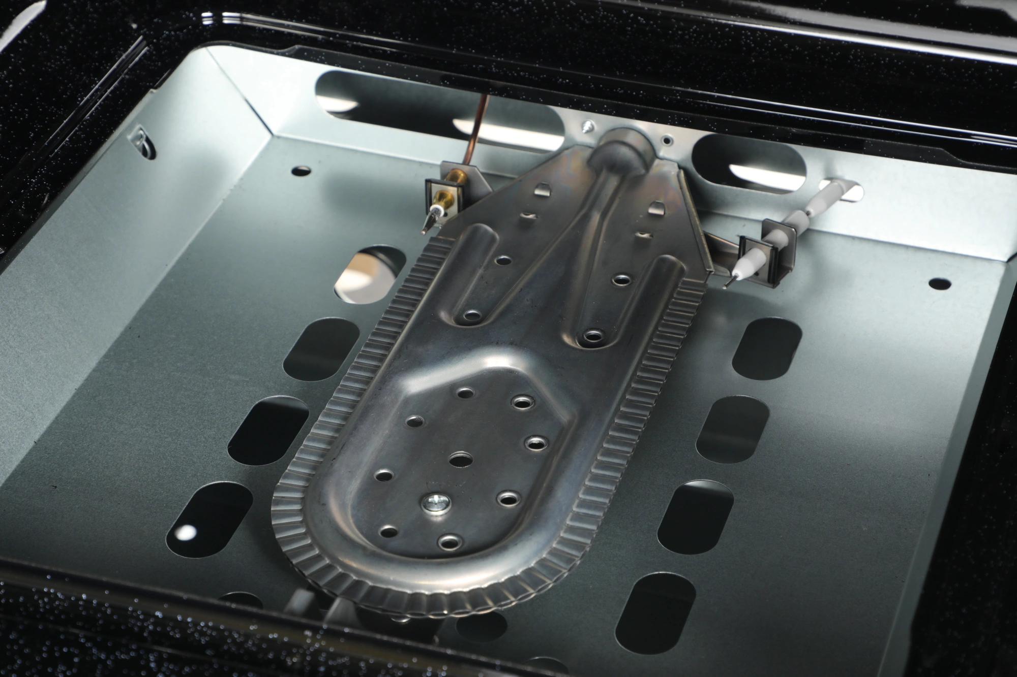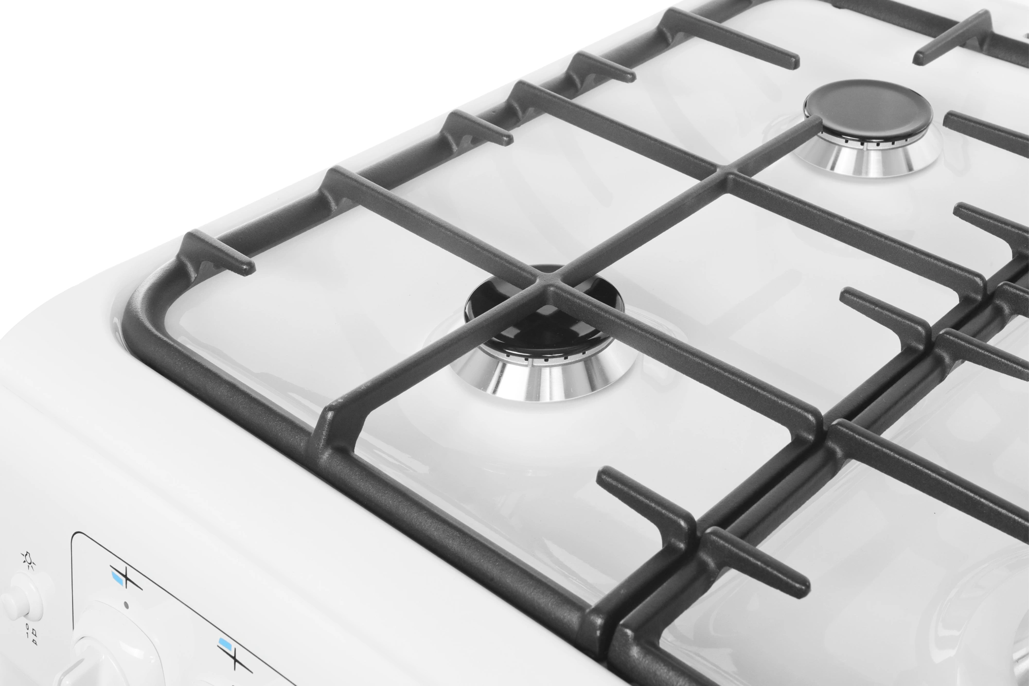 Ножки регулировочные. Подсветка духовки двойная. Проволочные направляющие. Терморегулятор (термостат). Электророзжиг горелок, кнопка розжига на панели. Электророзжиг духовки, кнопка розжига на панели.