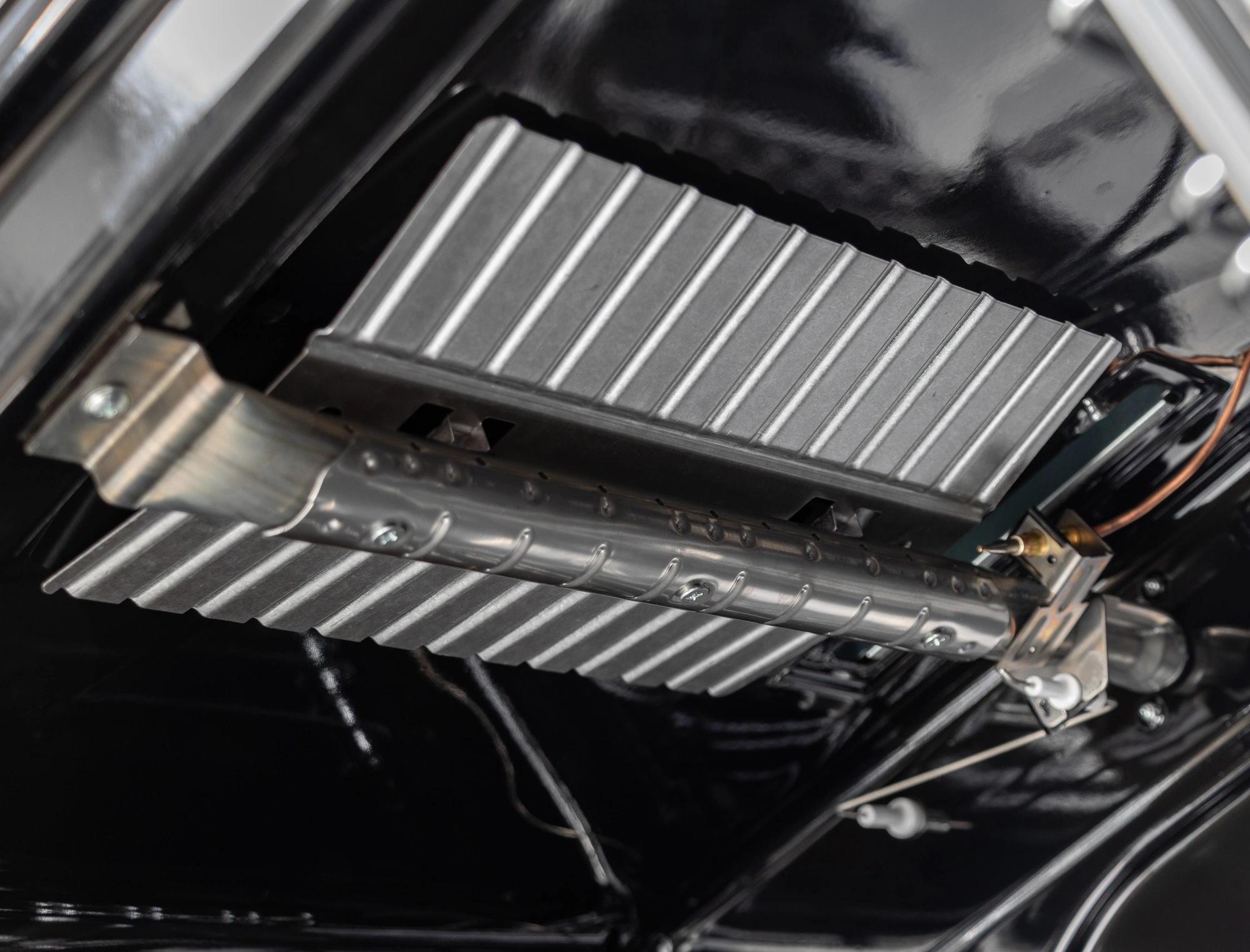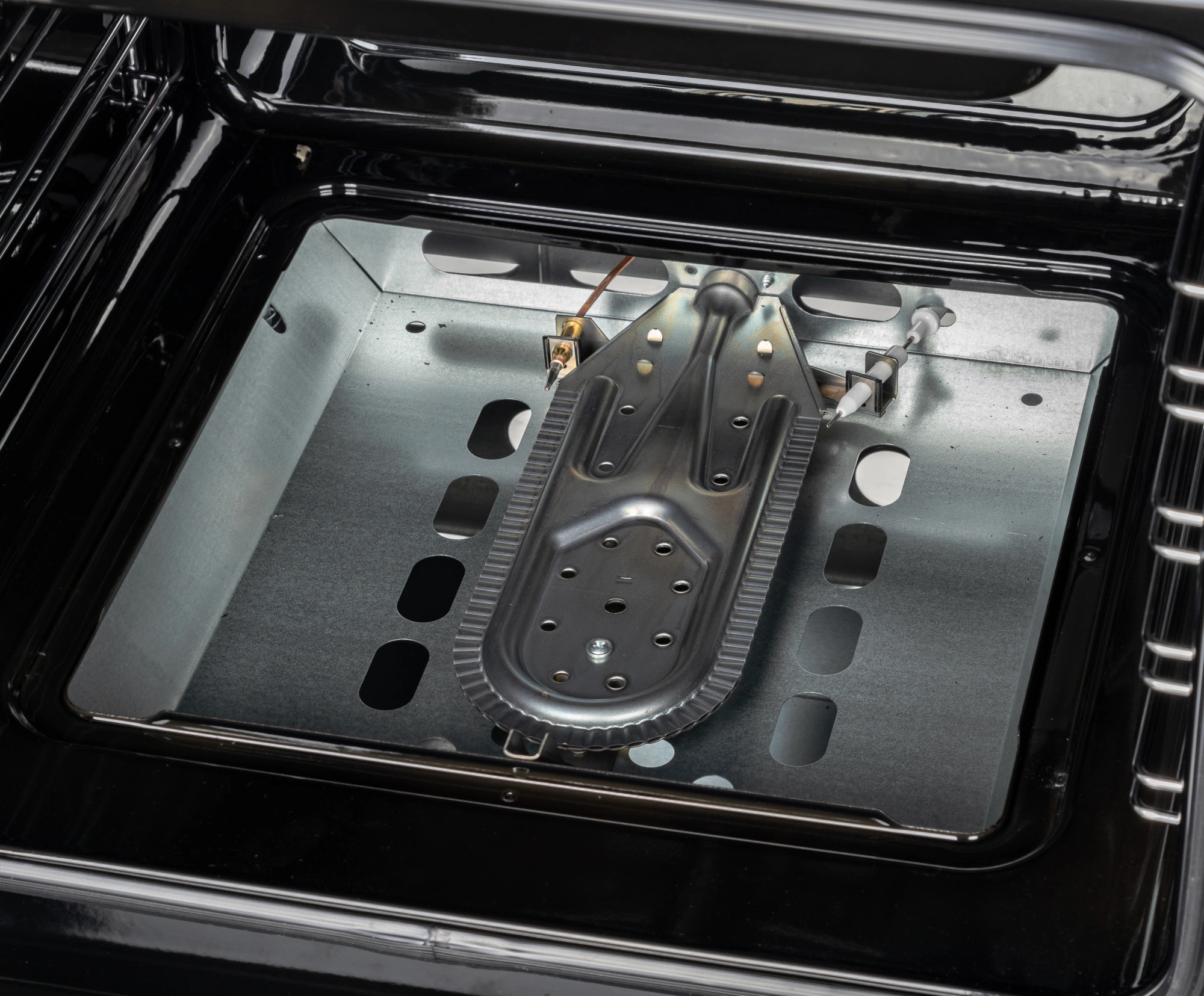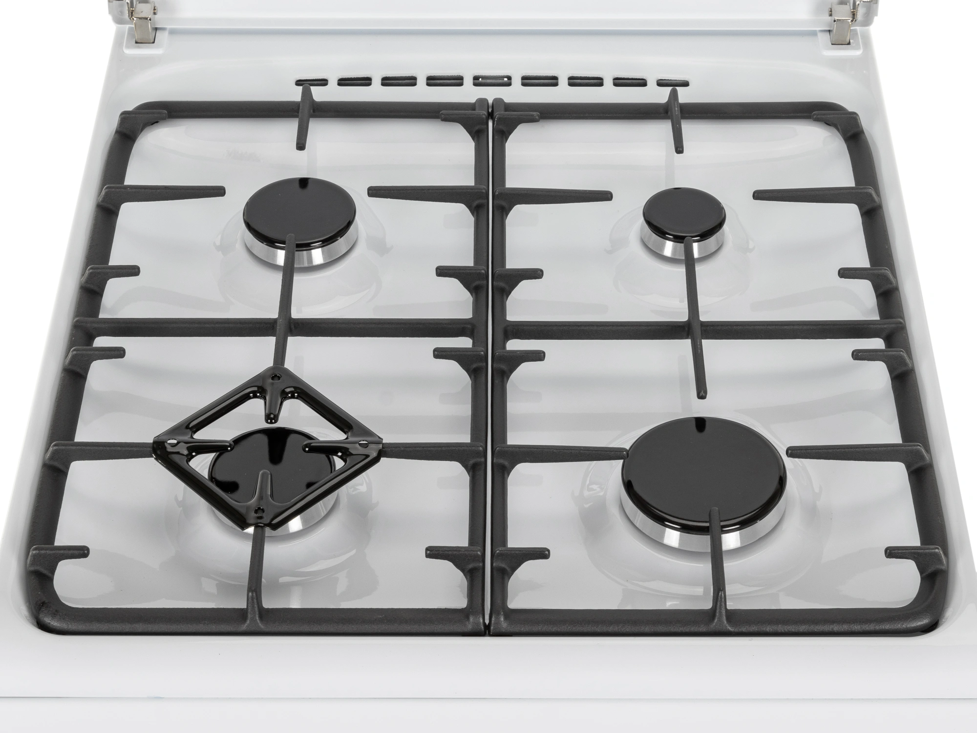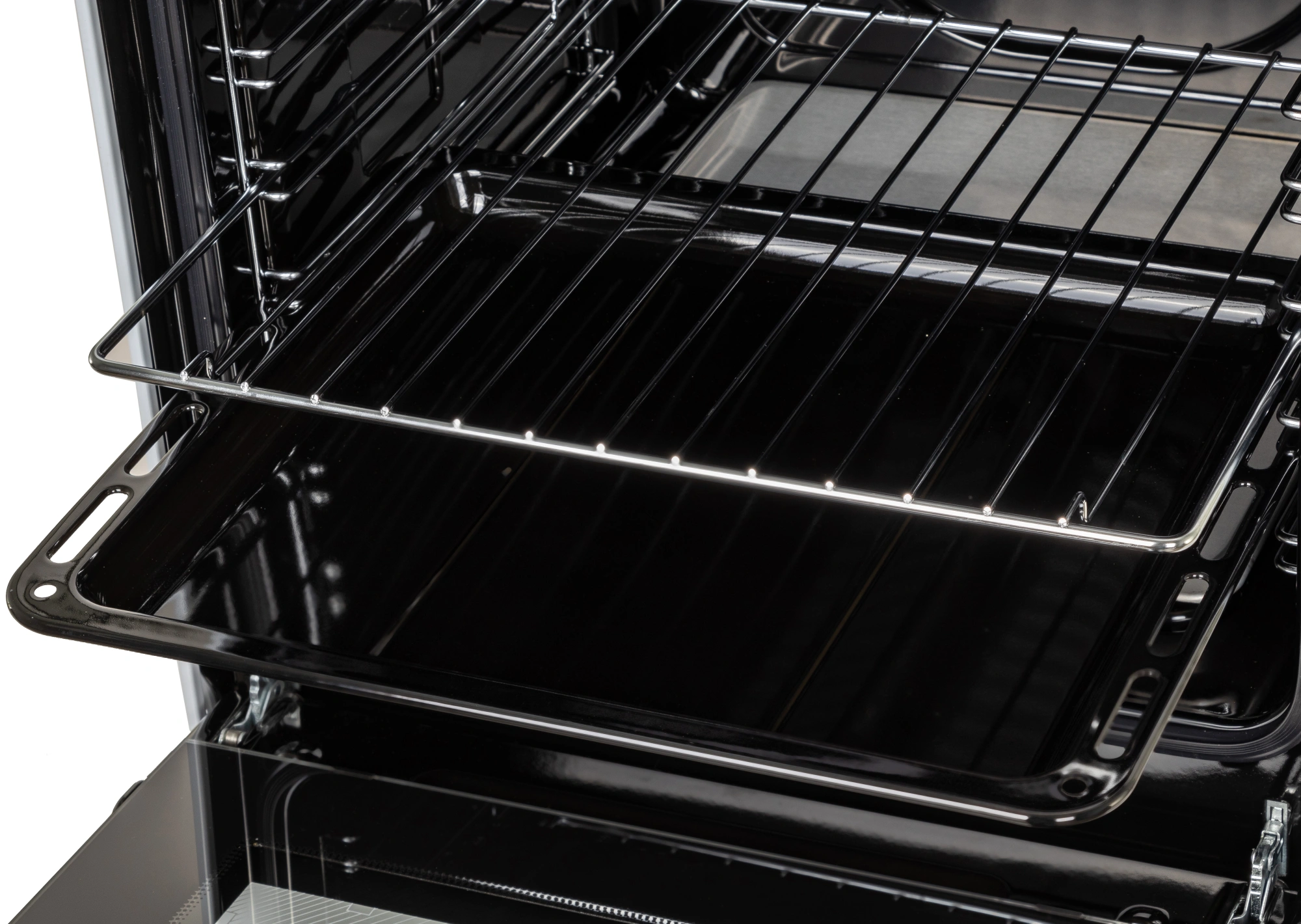 Ножки регулировочные. Проволочные направляющие. Терморегулятор (термостат). Электророзжиг горелок, кнопка розжига на панели. Электророзжиг духовки, кнопка розжига на панели. Мощность гриль-горелки: 1,9 кВт.