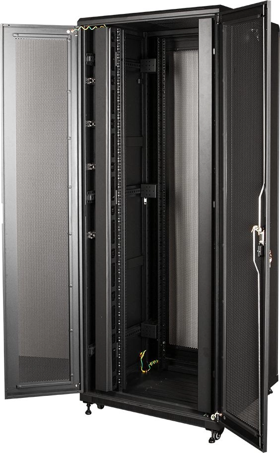 Шкаф серверный Lanmaster (TWT-CBB-42U-8X10-P1) напольный 42U 800x1000мм пер.дв.перфор. задн.дв.перфор.2-хст. 2 бок.пан. 800кг черный