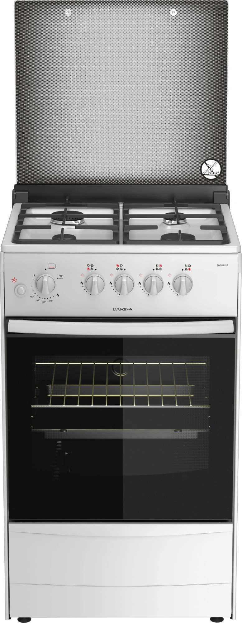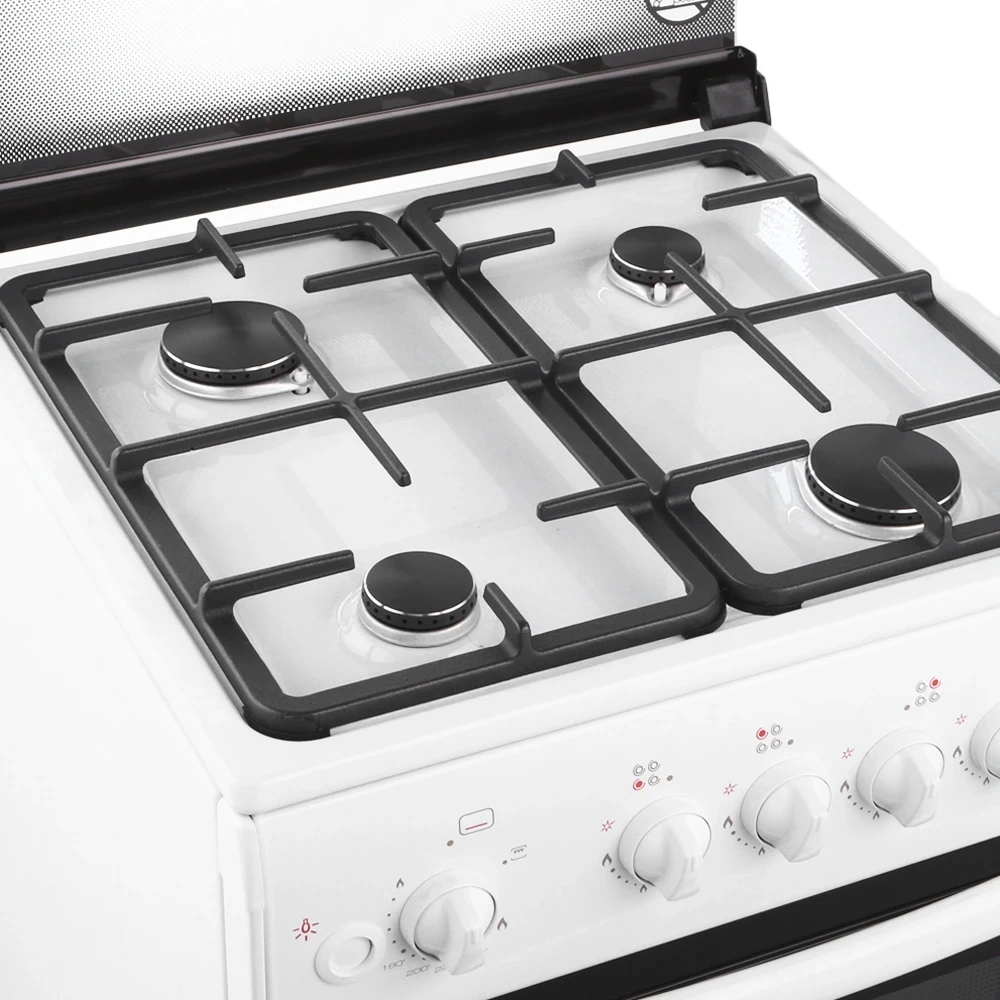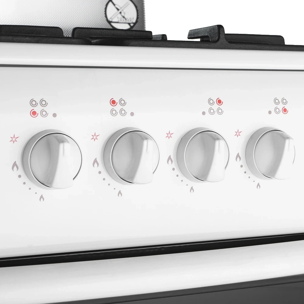 Фиксированное положение Малое пламя; Двойное стекло дверцы духовки; Газконтроль духовки; Подсветка духовки; Гриль; Терморегулятор; Интегрированный электророзжиг горелок стола;