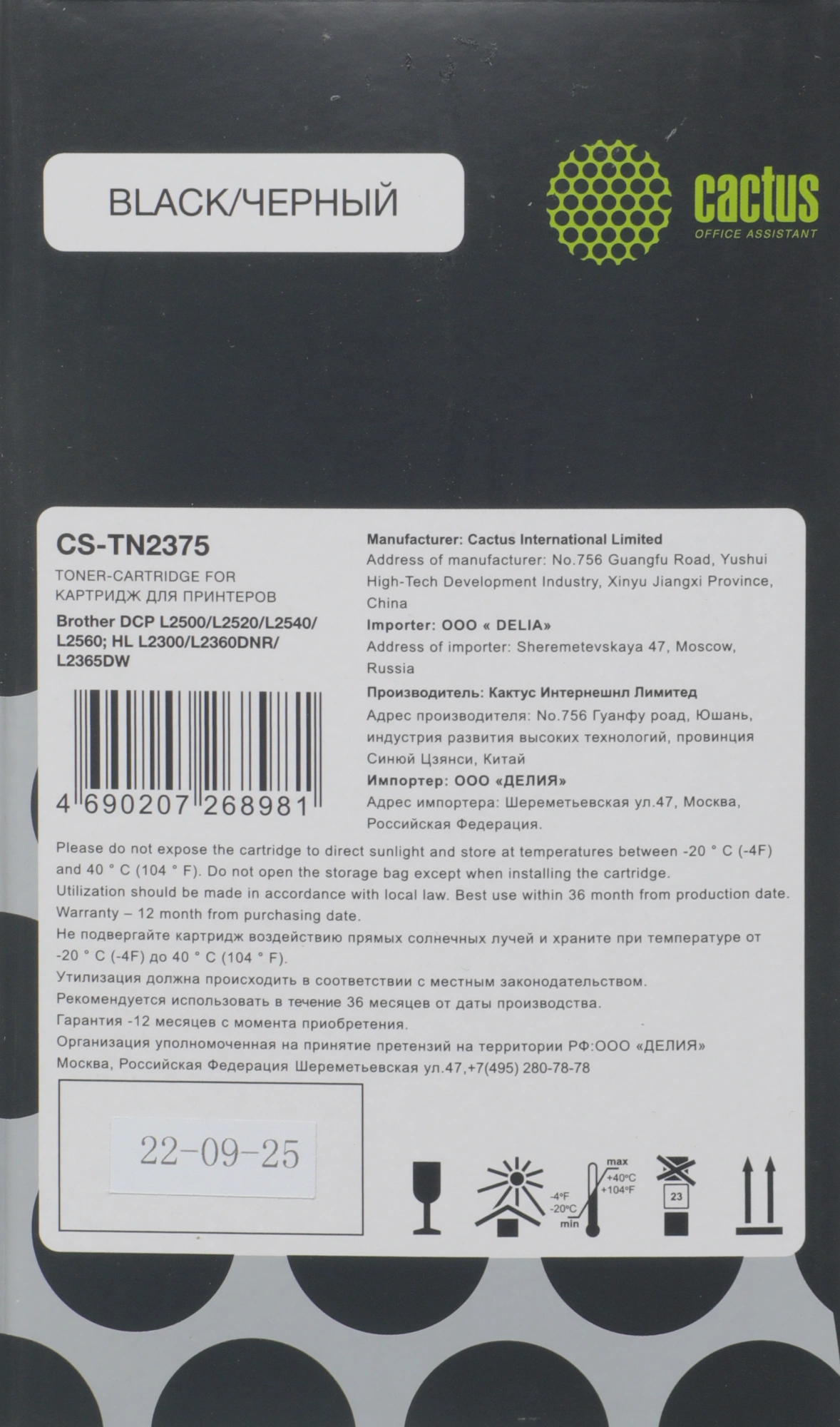TN-2375 черный (2600стр.) для Brother DCP L2500/L2...