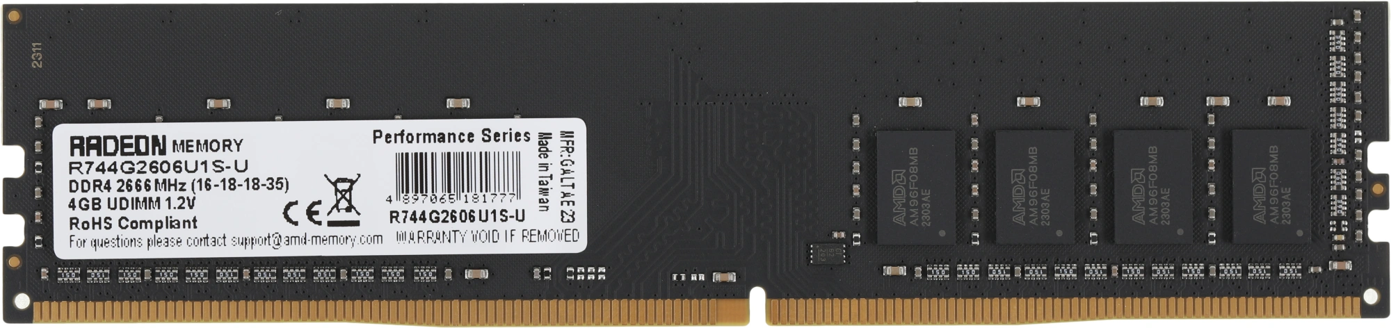 Память DDR4 4Gb 2666MHz AMD R744G2606U1S-U
