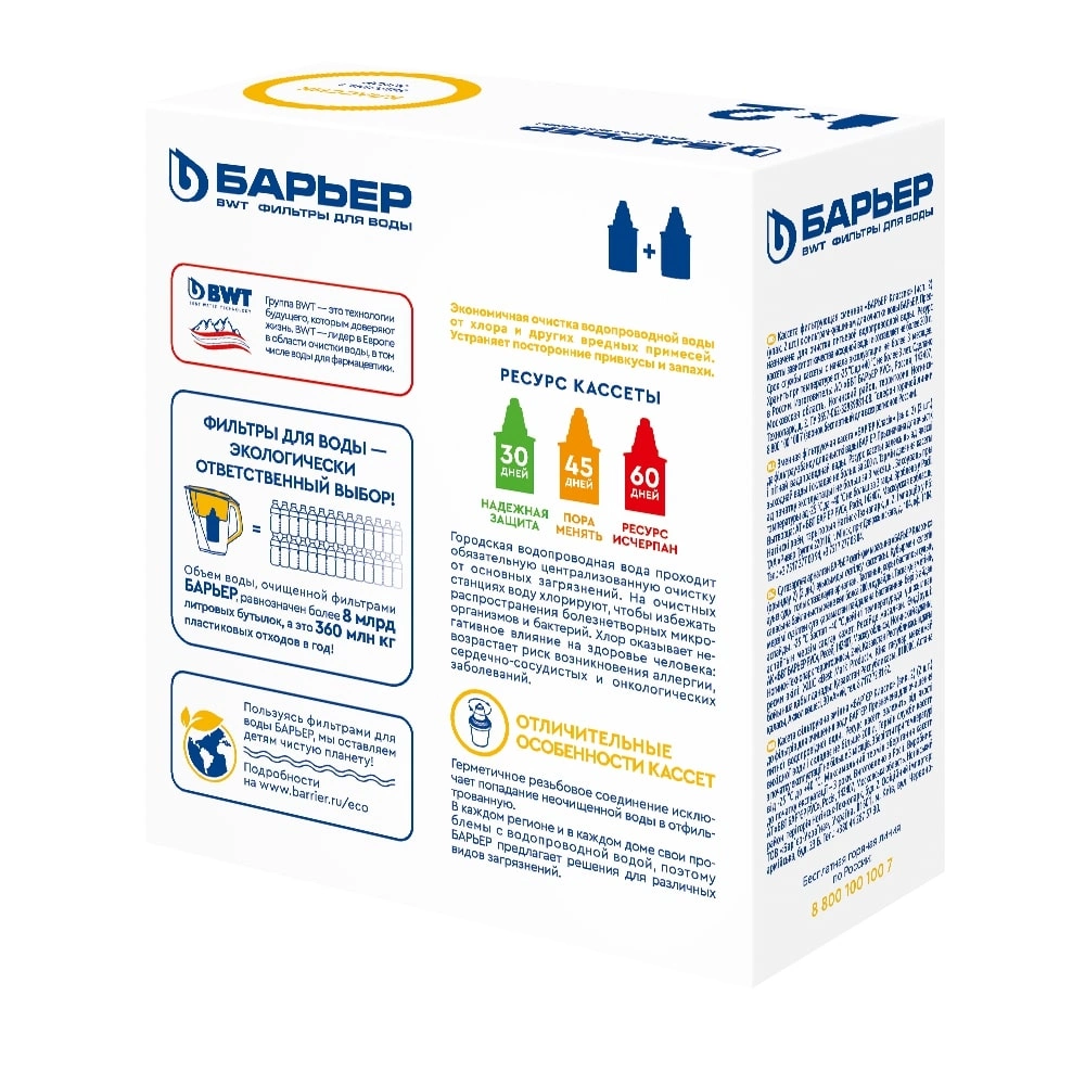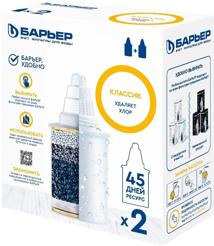 Кассета БАРЬЕР Классик - экономичная кассета для базовой очистки воды от: хлора, хлорорганических соединений, нефтепродуктов, тяжелых металлов.