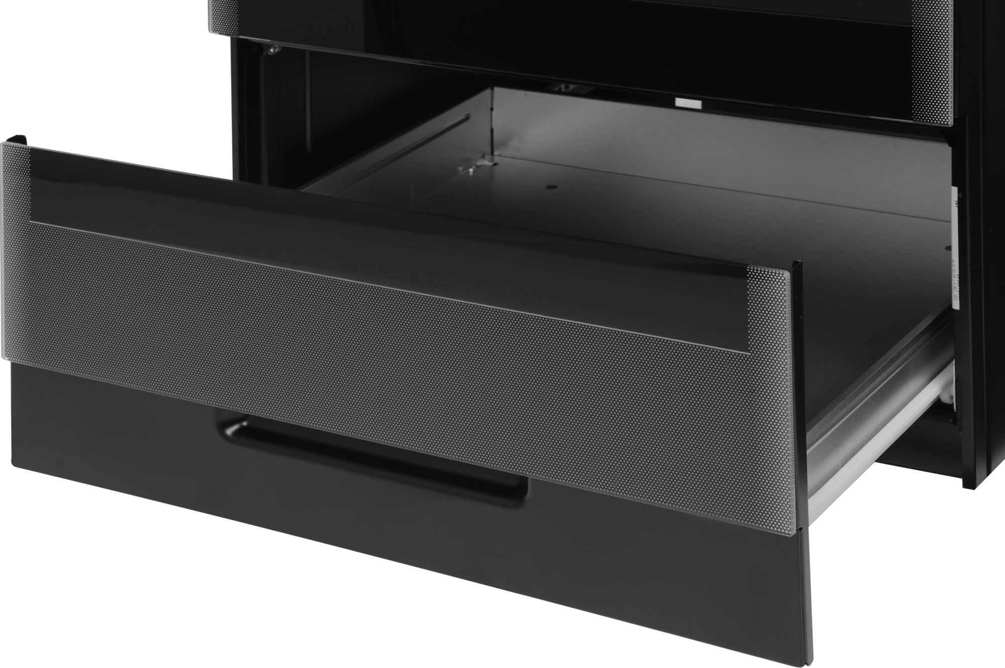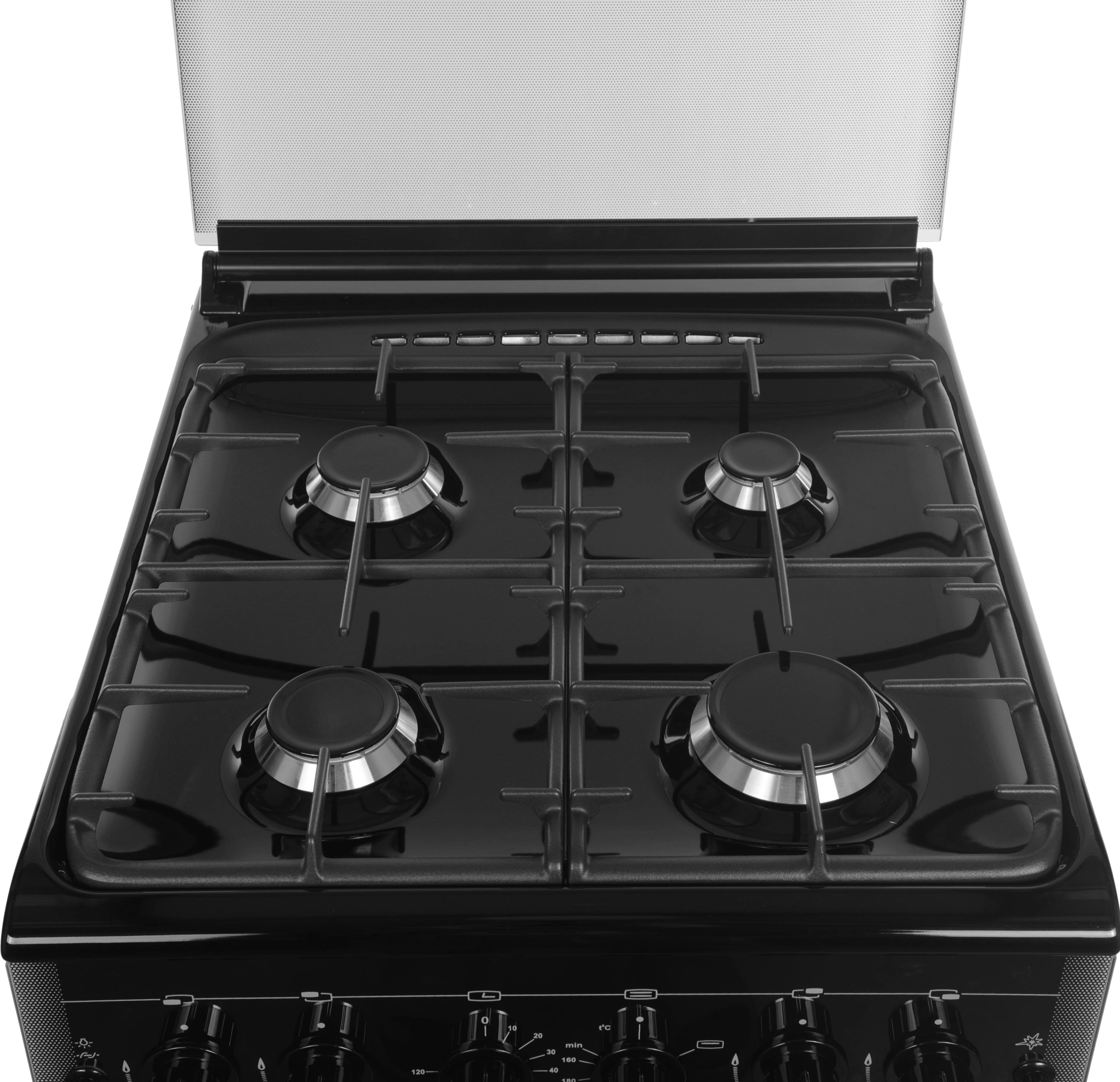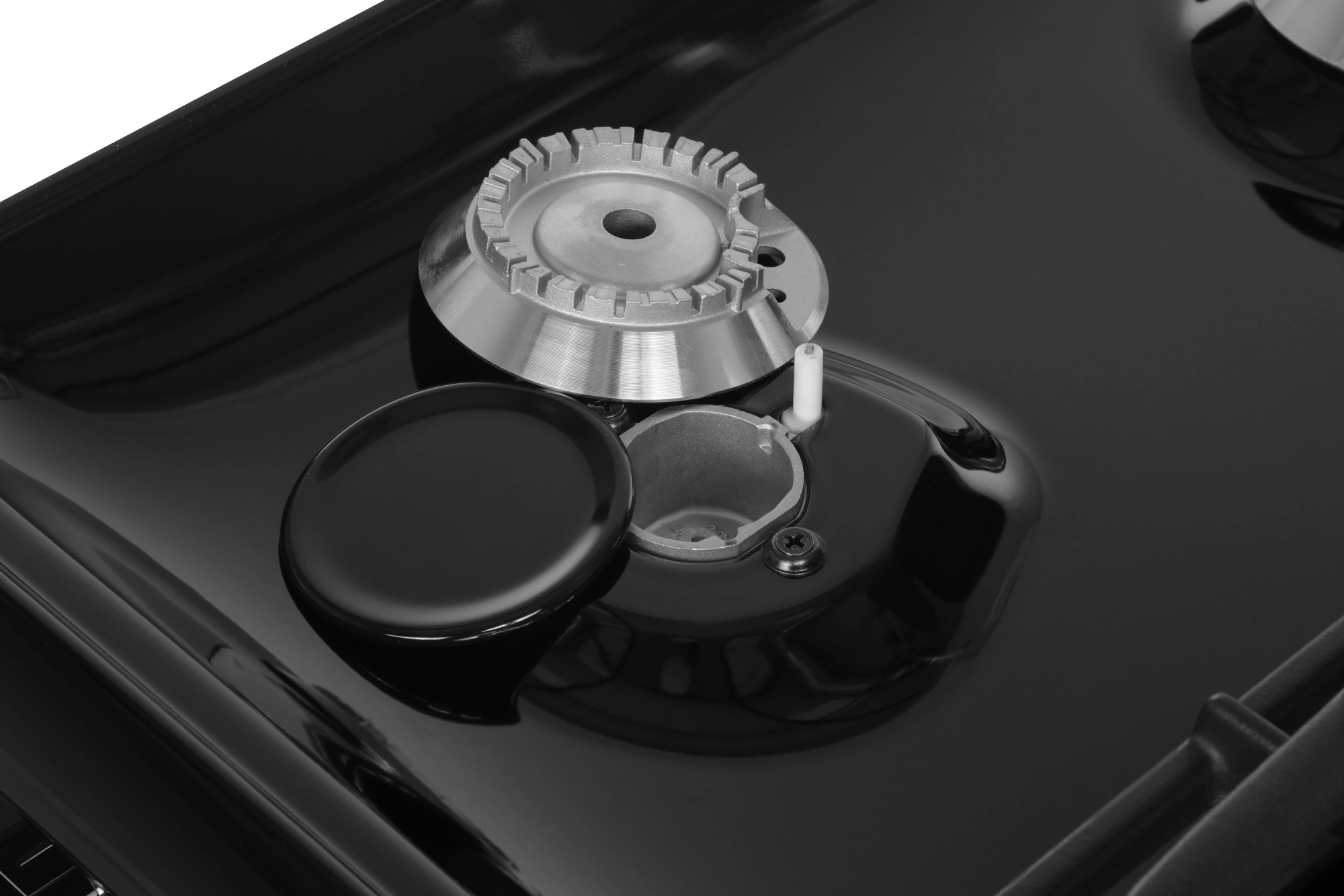 Вертел с электроприводом. Ножки регулировочны. Проволочные направляющие. Терморегулятор (термостат). Электророзжиг горелок, кнопка розжига на панели. Электророзжиг духовки, кнопка розжига на панели.