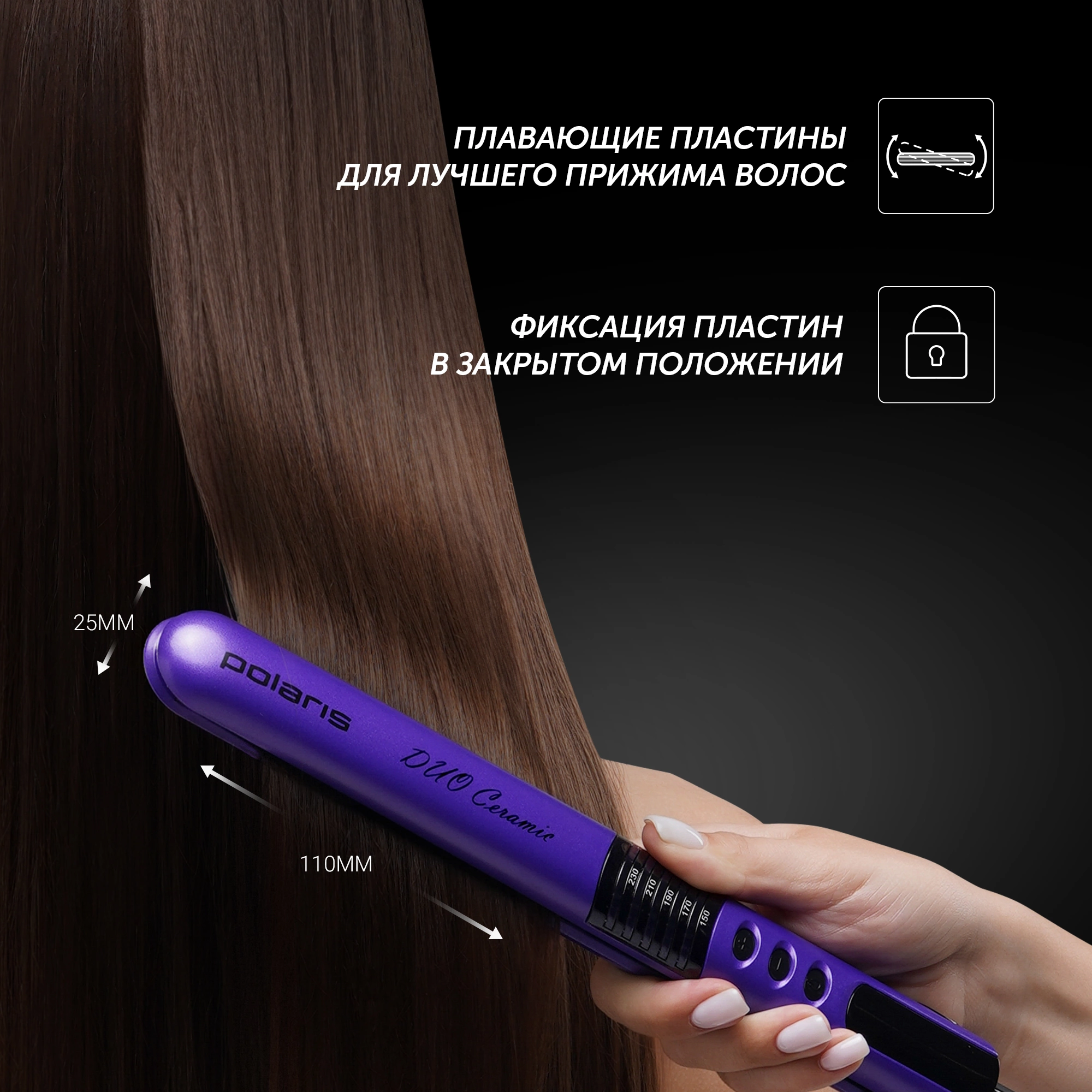 Даже самые непослушные волосы станут гладкими и обретут блеск с этим выпрямителем. Кроме того, в комплекте идет насадка-щипцы для создания локонов. Пять температурных режимов позволяют работать с любым типом волос. Плавающие керамические пластины не повредят и не сожгут пряди.