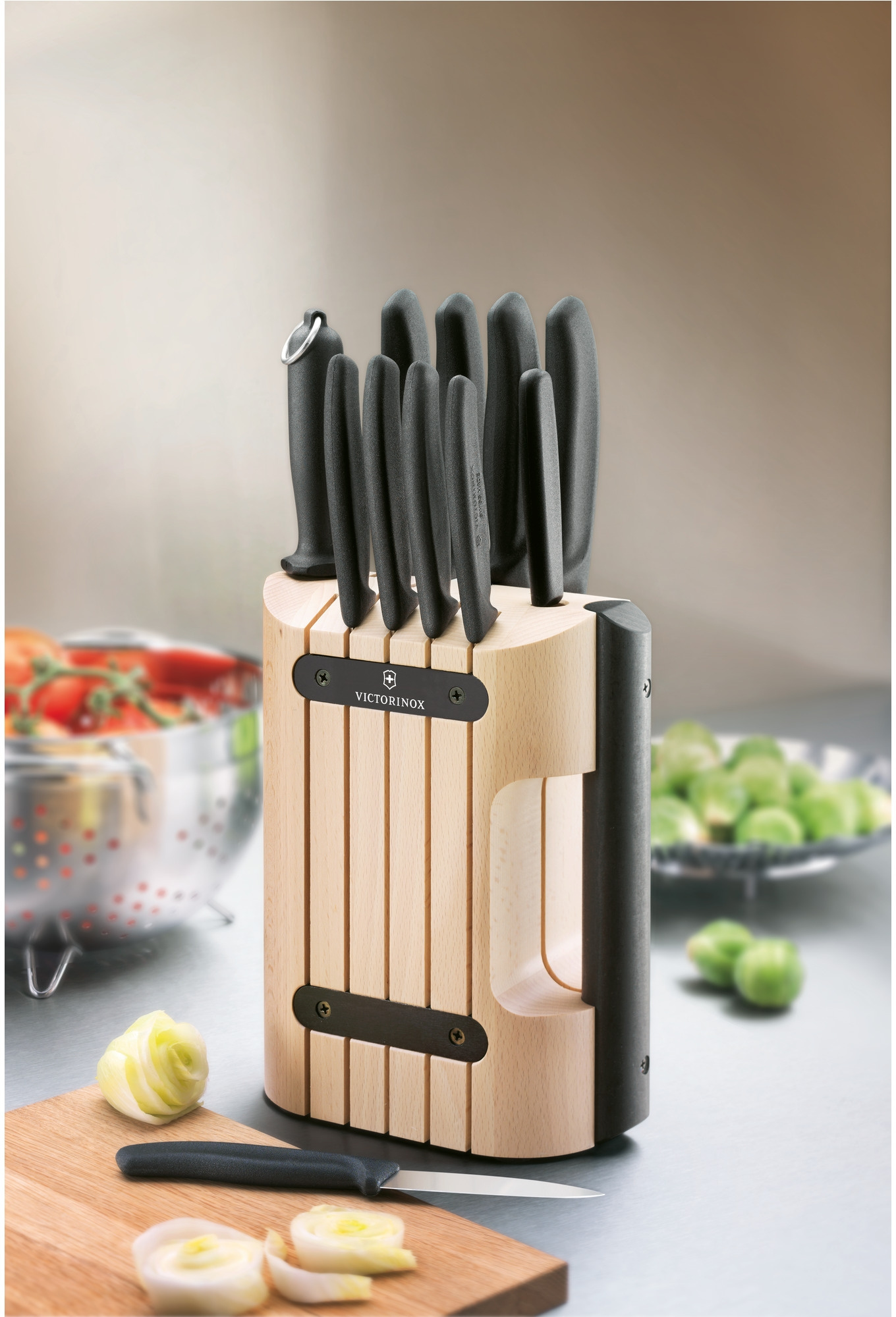 Наборы кухонных ножей Victorinox – это изделия высокого качества, которые полностью отвечают всем требованиями международных стандартов.Материал лезвия:Сталь прокатная, молибден-ванадиевая (X50 Cr Mo V 15) Материал рукояти:Полипропилен, Материал подставки:дерево.