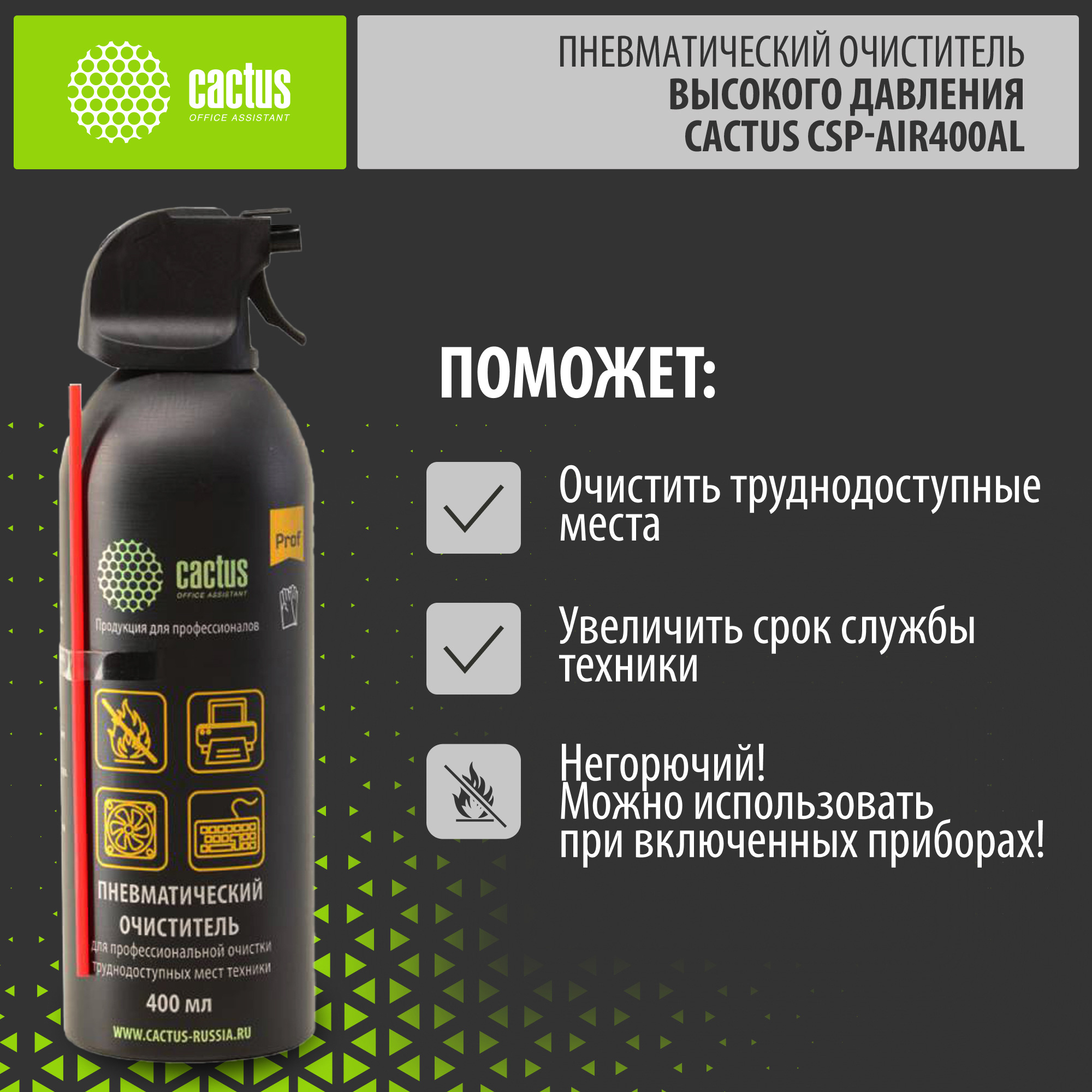 Очиститель высокого давления позволяет очищать от пыли и грязи труднодоступные места принтеров, компьютерной клавиатуры, копировальных машин, факс машин и различной оргтехники. Мощный напор струи обеспечивает быстроту и эффективность использования. Воздух в баллонах негорючий.