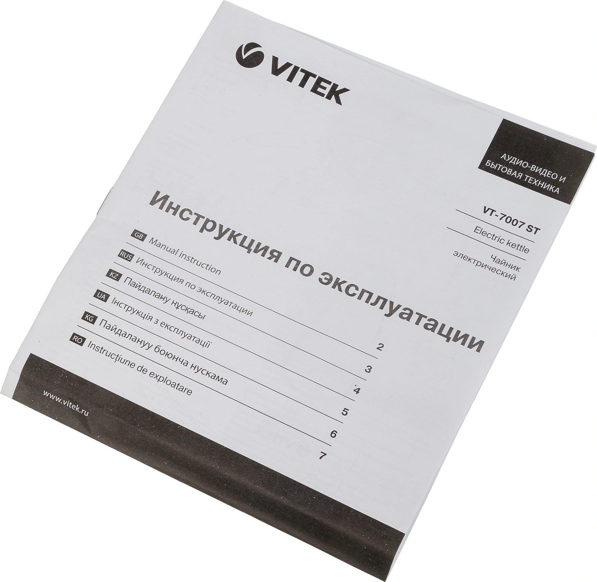 Чайник VITEK VT-7007 отлично впишется в интерьер вашей кухни. Прибор снабжен индикаторами уровня жидкости и включения, он отключится при отсутствии воды.