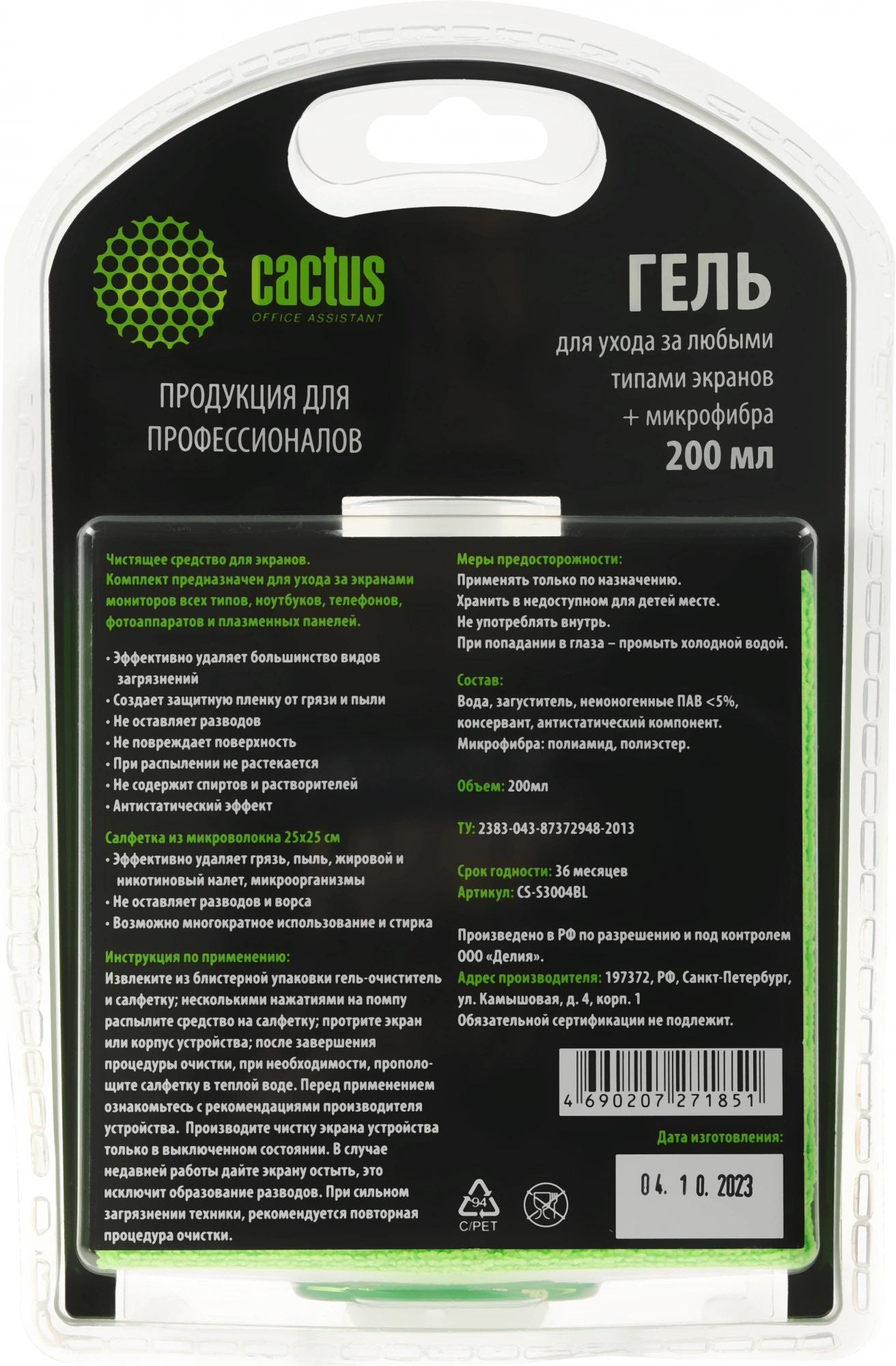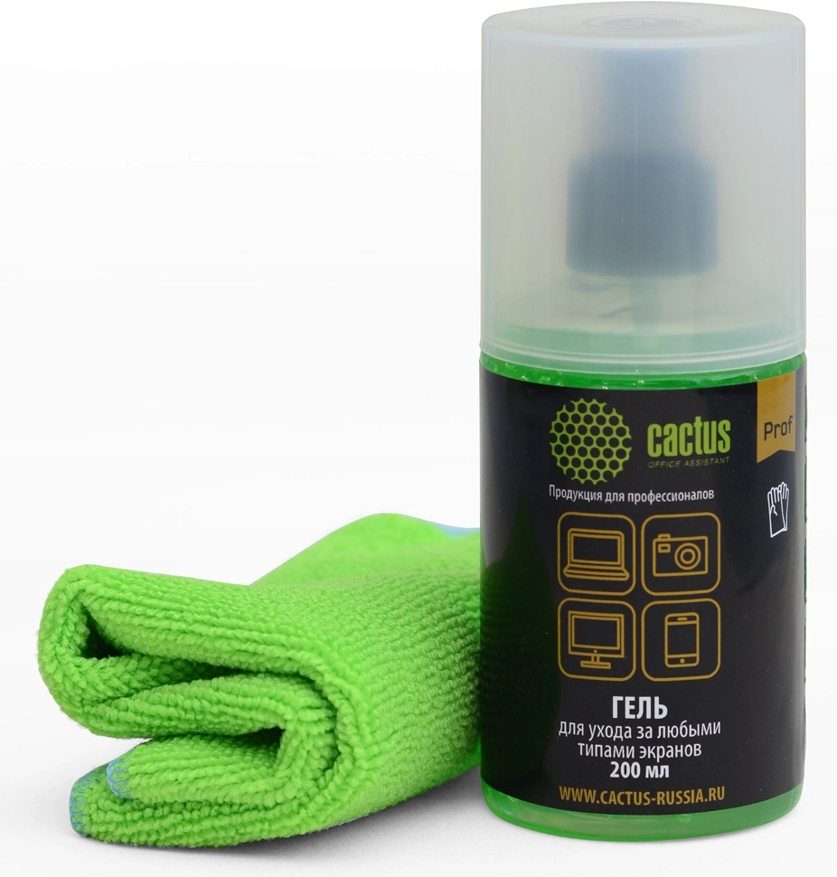 Набор: гель для ухода за любыми типами экранов с микрофиброй СACTUS Professional