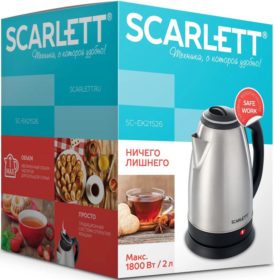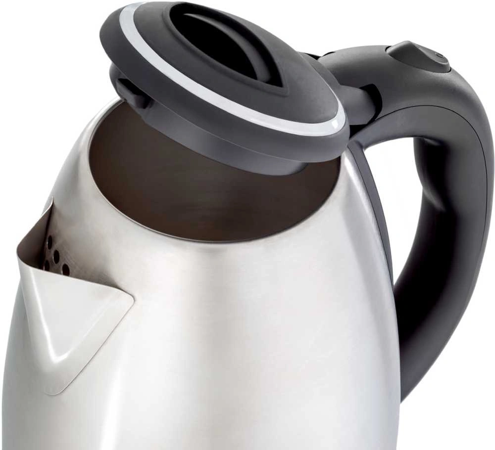 Стильный и удобный электрический чайник в универсальном серебристо-черном дизайне оснащен большой ручкой. Прибор обладает увеличенным объемом 2л, что является идеальным решением для большой семьи или офиса. Корпус прибора выполнен из нержавеющей стали
